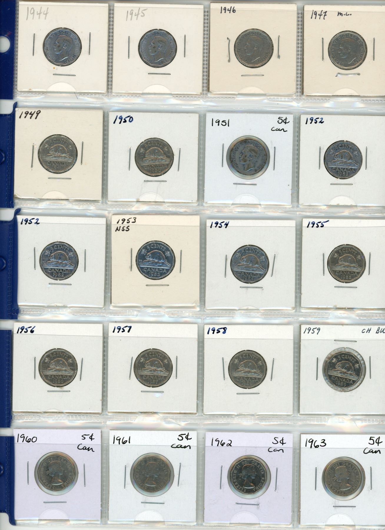 1944-1968 Canadian Five Cents. (1948, 1964 Missing)