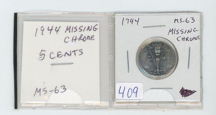 1944 5 cents Missing Chrome. MS-63.