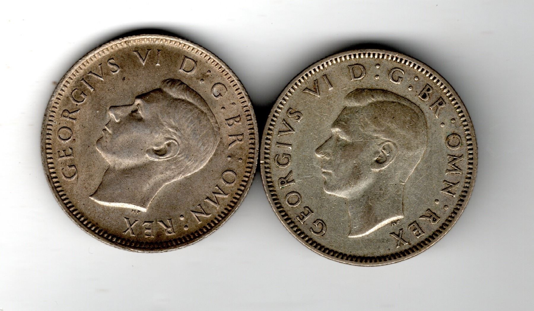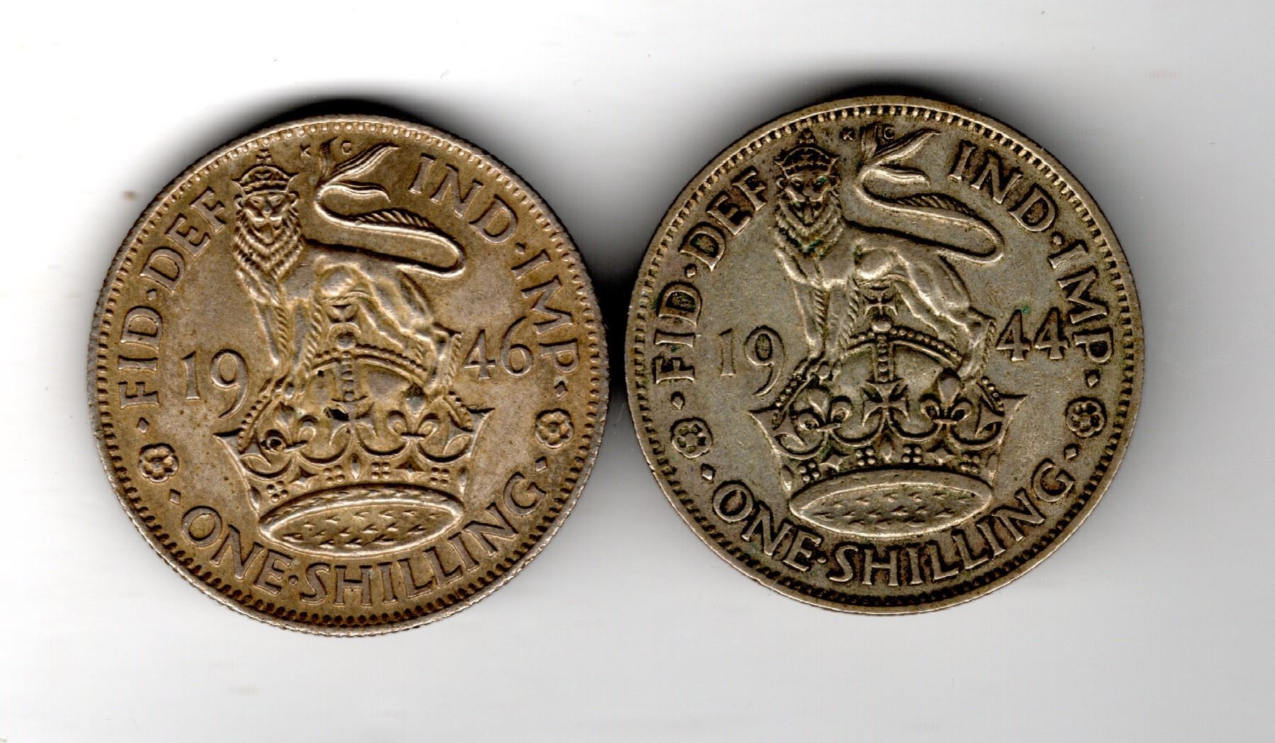 1944 AND 1946 BRITISH ONE SHILLING 50% SILVER
