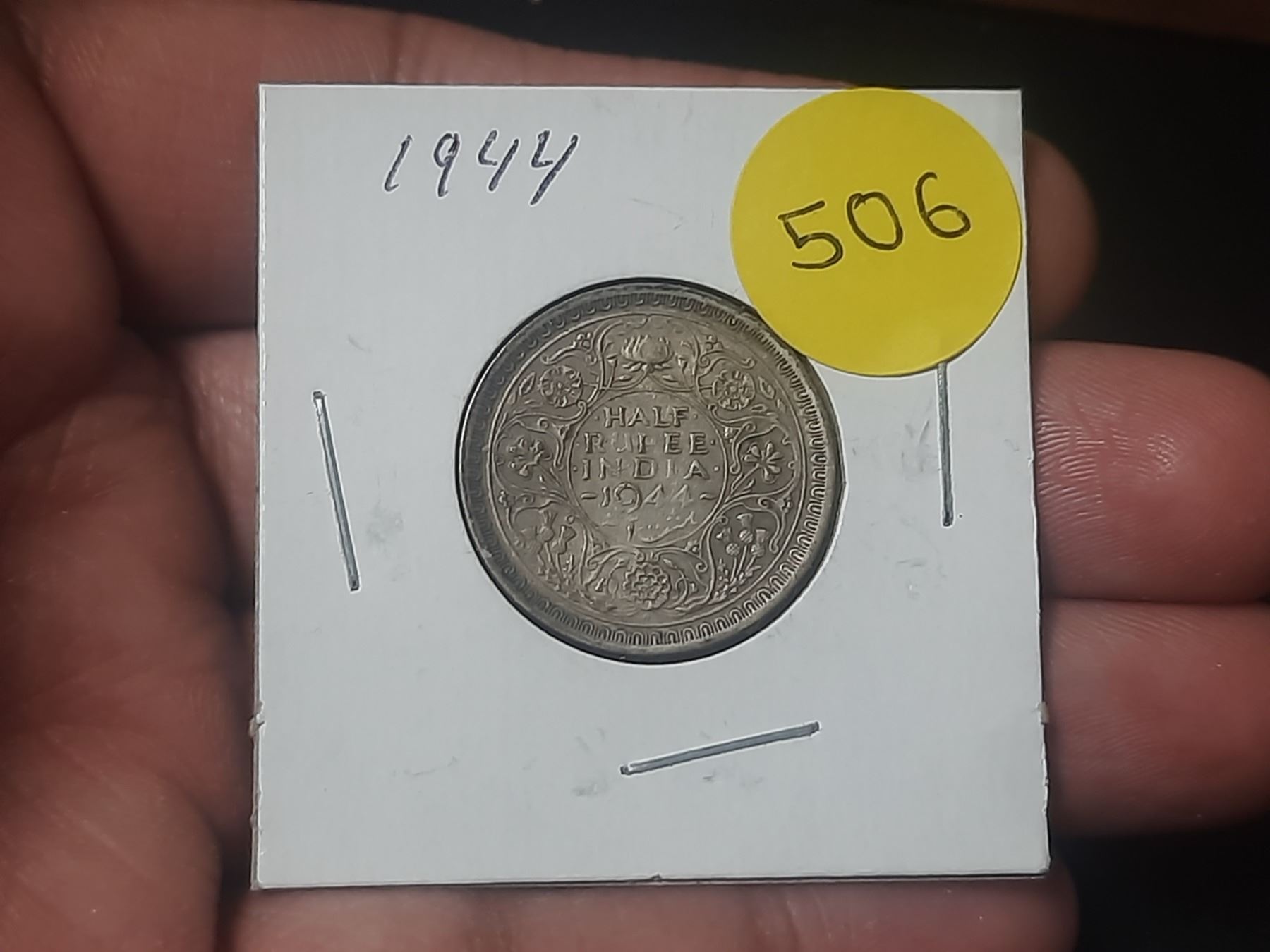 1944 British India Half-Rupee Coin.