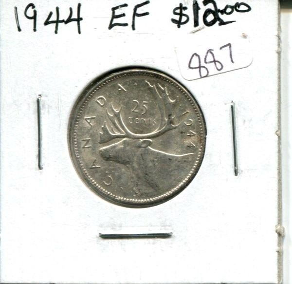 1944 Canadian Silver 25 Cents. World War II issue. EF-40. Nice.