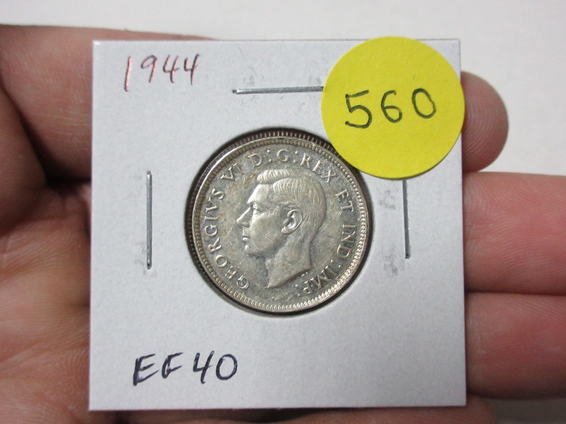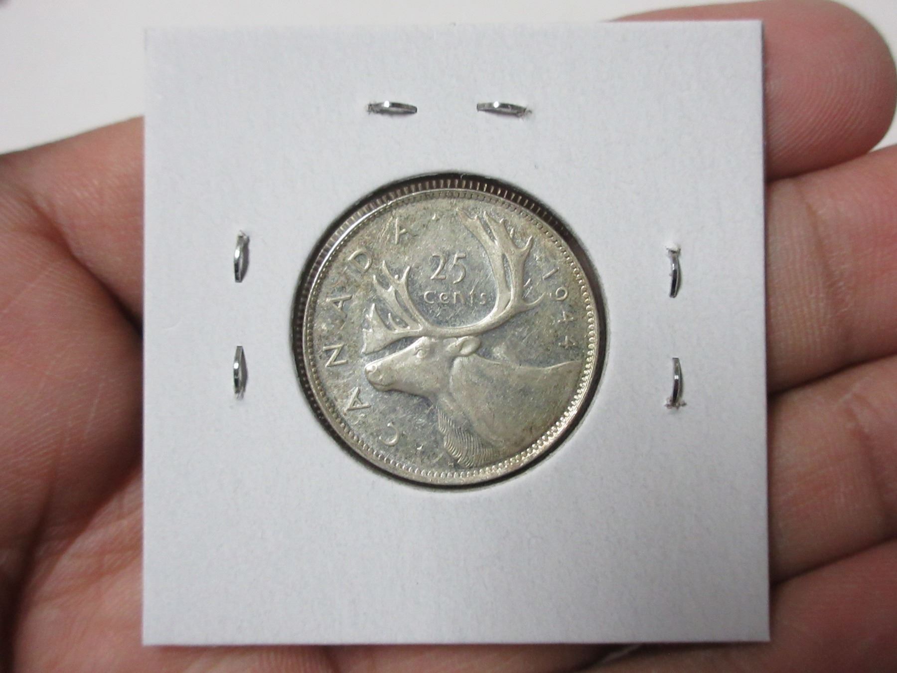 1944 Canadian Silver 25 Cents. World War II issue. EF40. Nice.