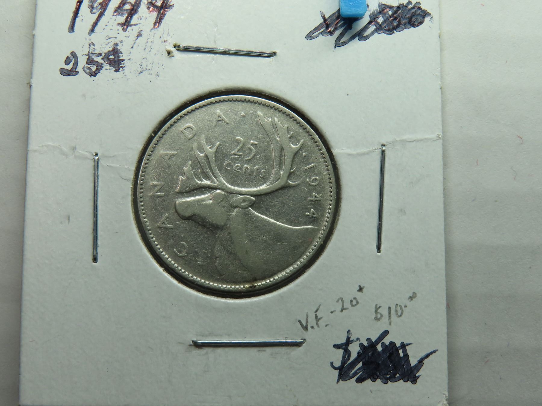 1944 Canadian silver quarter VF-20+