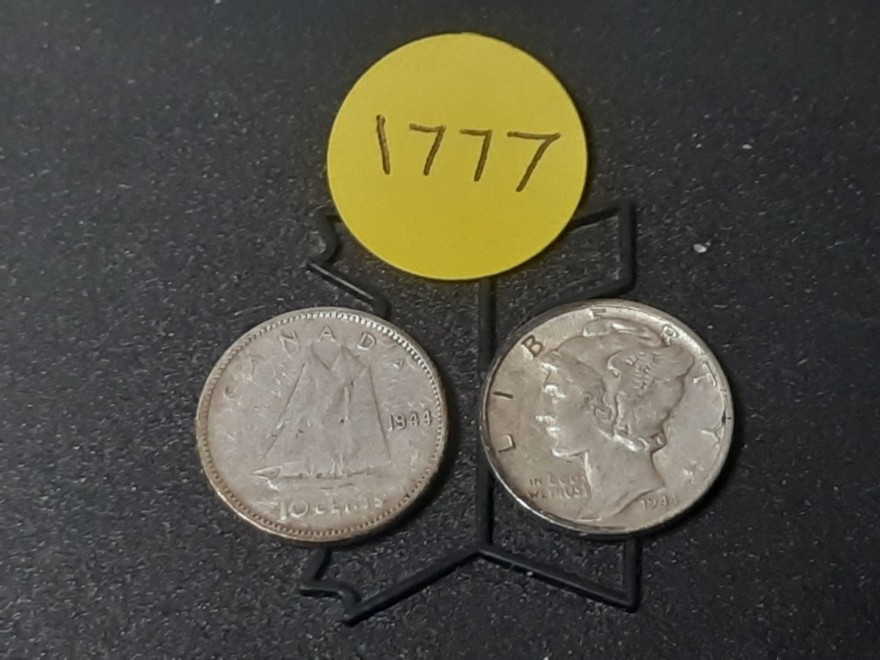 1944 Canda and U.S.A. Silver One Dime.
