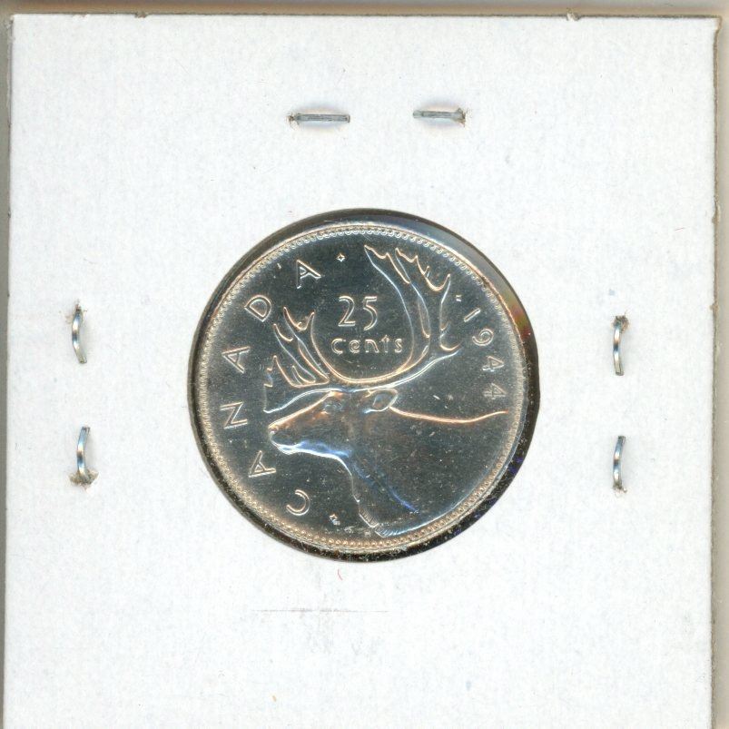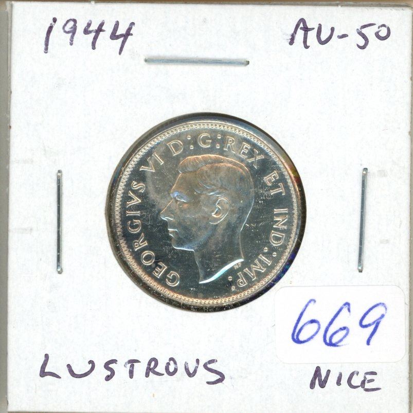 1944 Silver 25 Cents. World War II issue. AU-50. Nice.