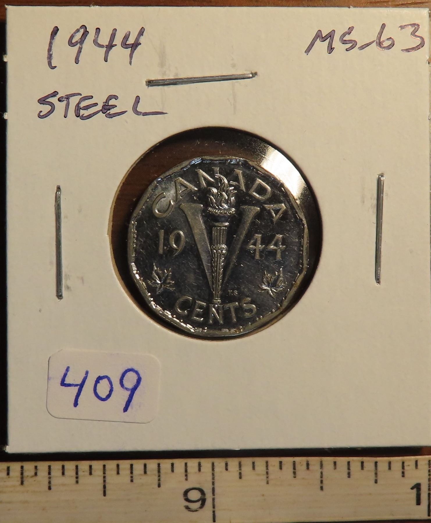 1944 Steel 5 Cents. The first Steel 5 Cents. MS-63. Lustrous.