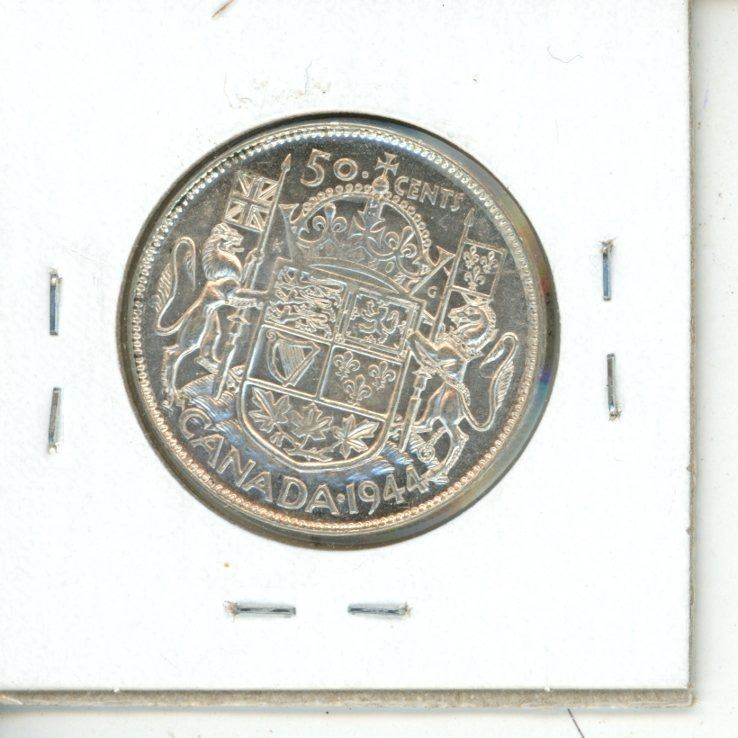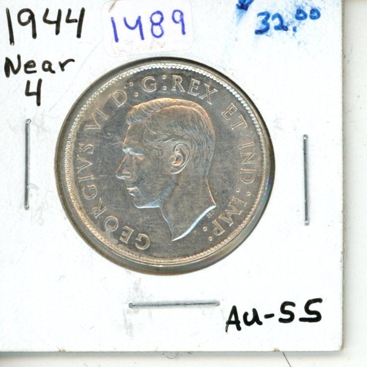 1944 silver Near 4 Canadian Fifty Cents.