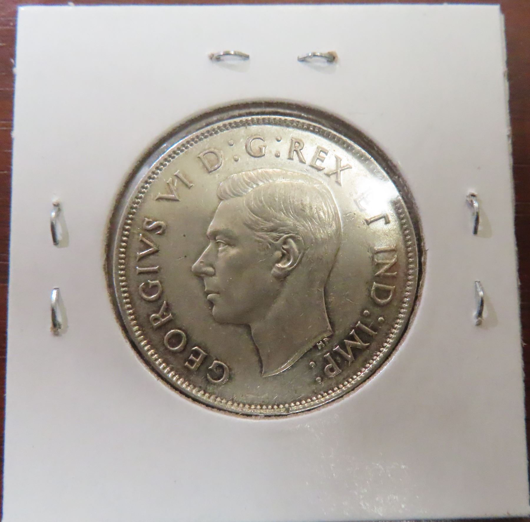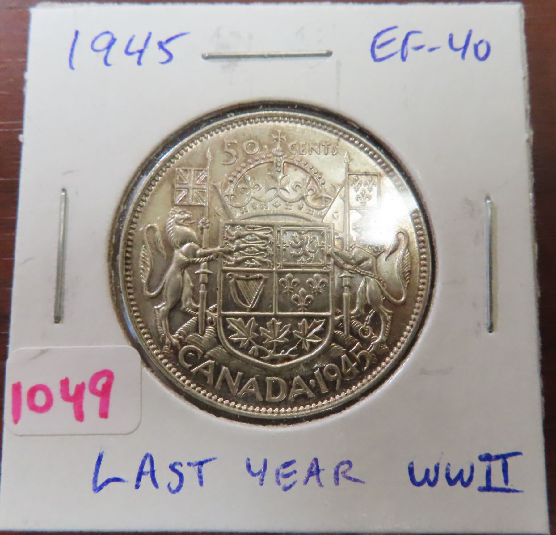 1945 Canadian Silver 50 Cents. Last year of World War II. EF-40.