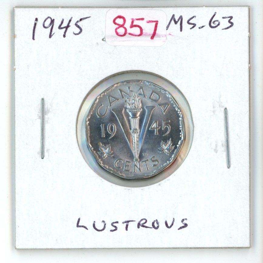 1945 Steel 5 Cents. With Chrome Plating. MS-63. Lustrous.