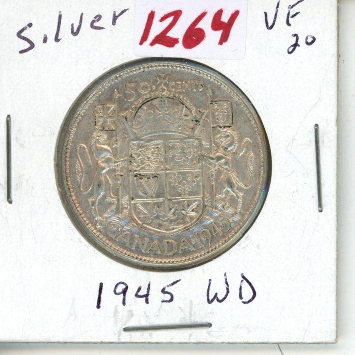 1945 WD Canadian Silver 50 cent coin - King George VI
