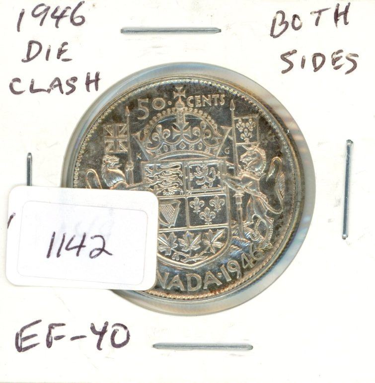 1946 .50C Canadian Silver Coin Die Crack Both Sides EF40