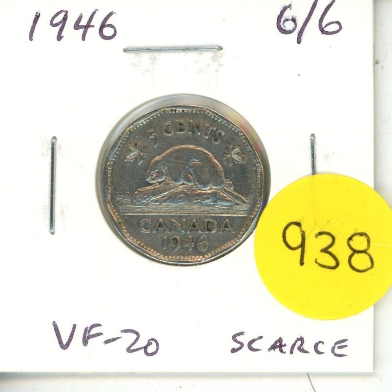 1946 6/6 Nickel 5 Cents. Scarce 6/6 variety. VF-20.