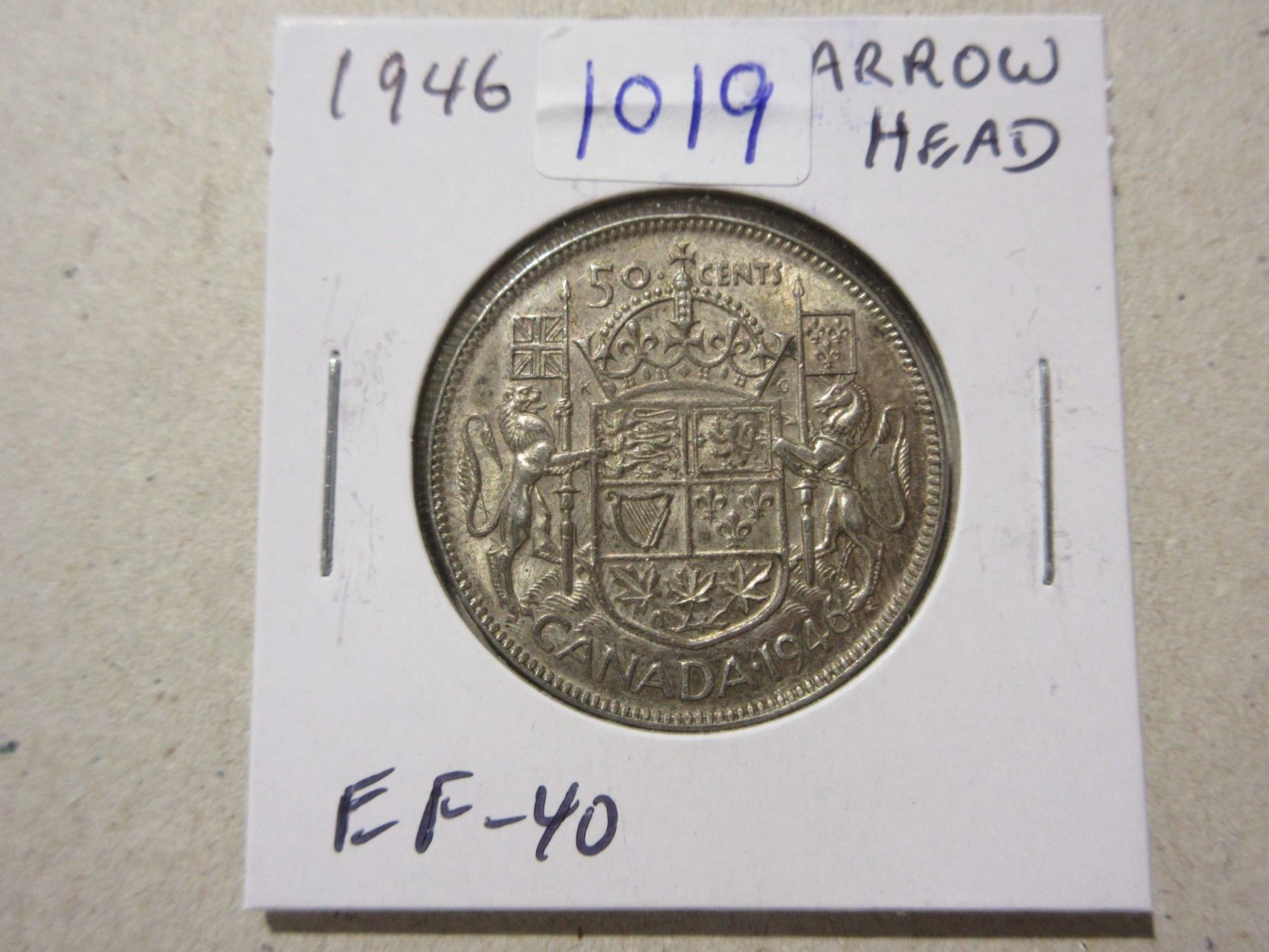 1946 Arrowhead Silver 50 Cents. There is a Die Chip in the 6 that looks like an Arrowhead. EF-40. Scarce.