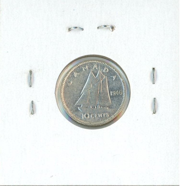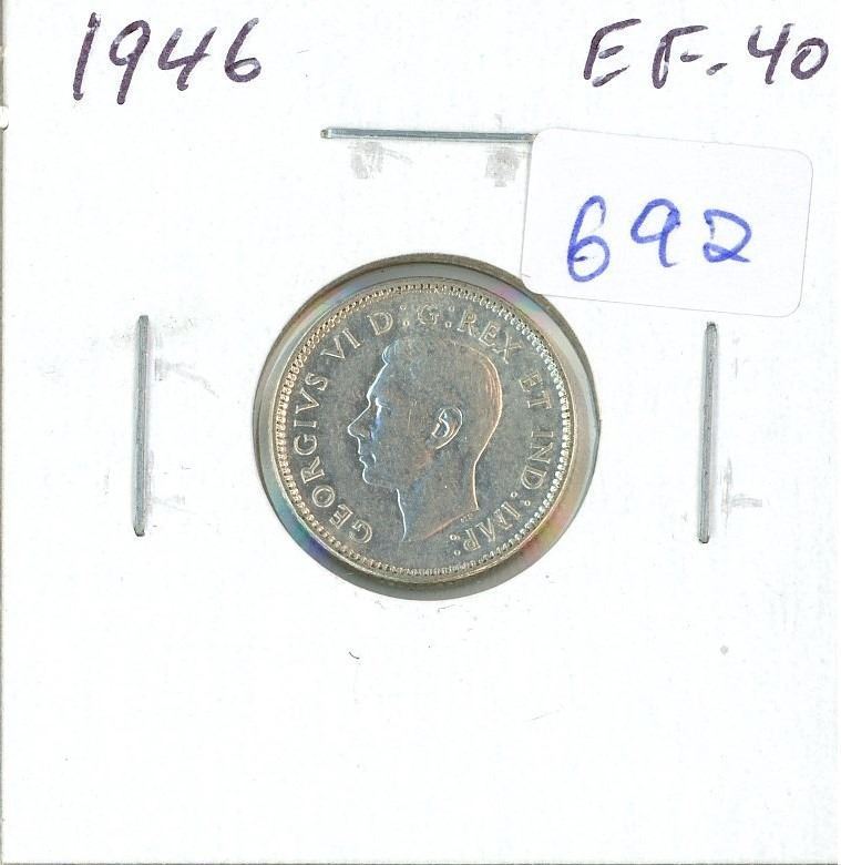1946 Canadian Silver 10 Cents. EF-40. Nice.