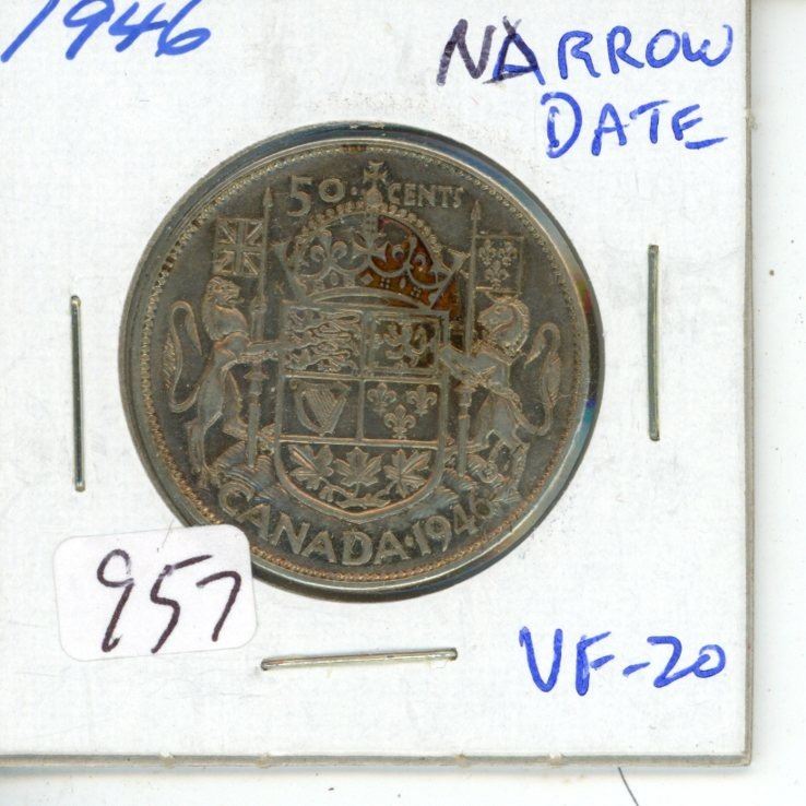 1946 Narrow Date George VI Silver 50 Cents. VF-20.