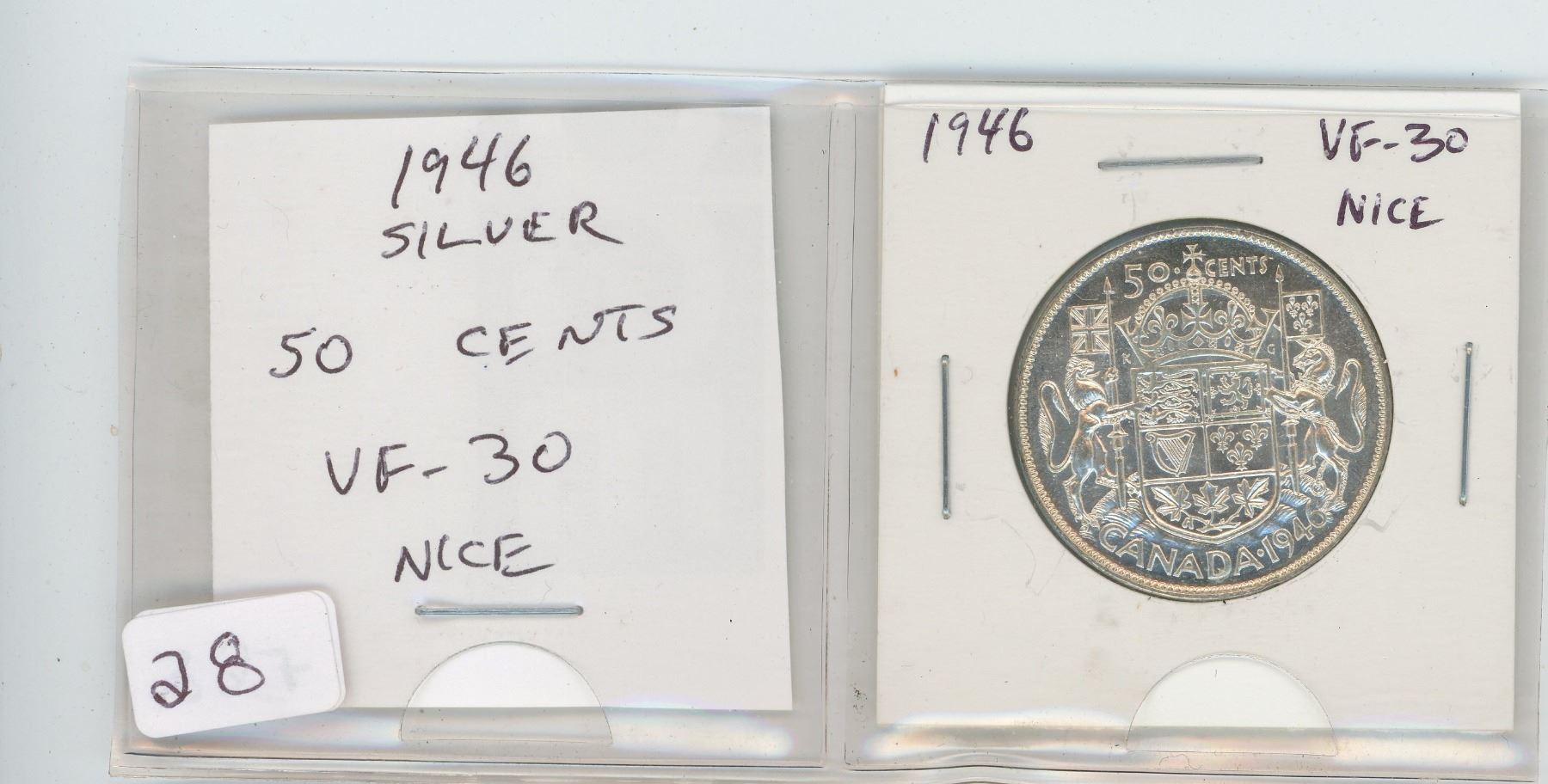 1946 SILVER 50 CENTS. VF-30. NICE.