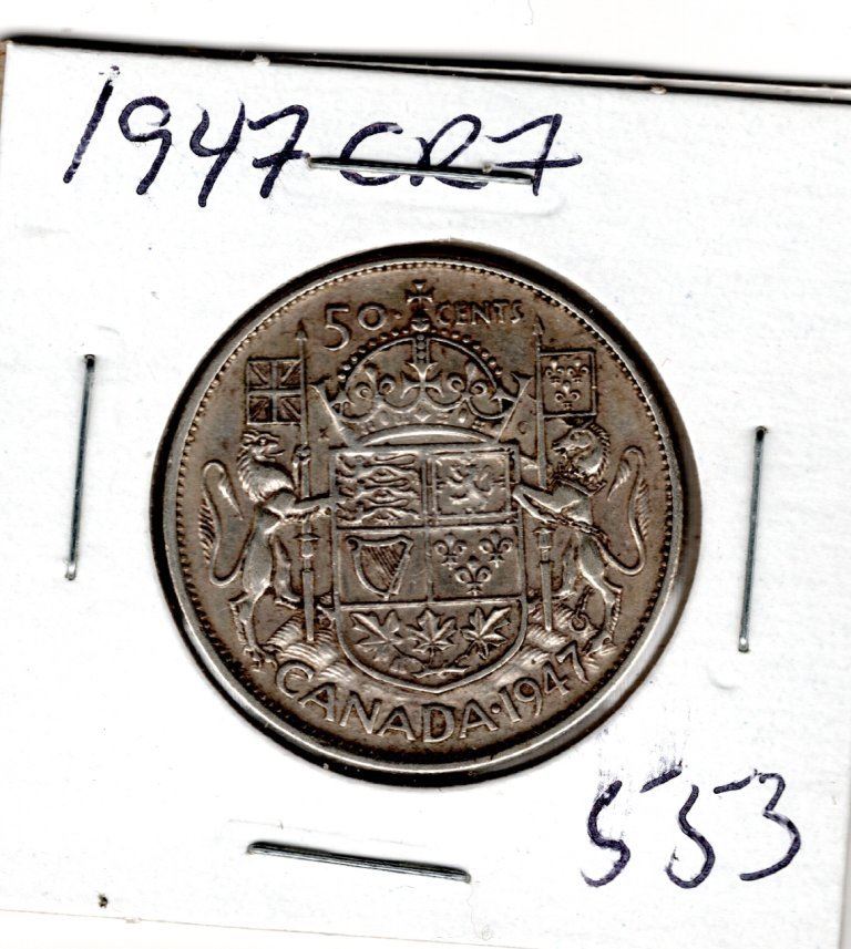 1947 CNDN 50 CENT PC *CURVED RIGHT 7* (SILVER)
