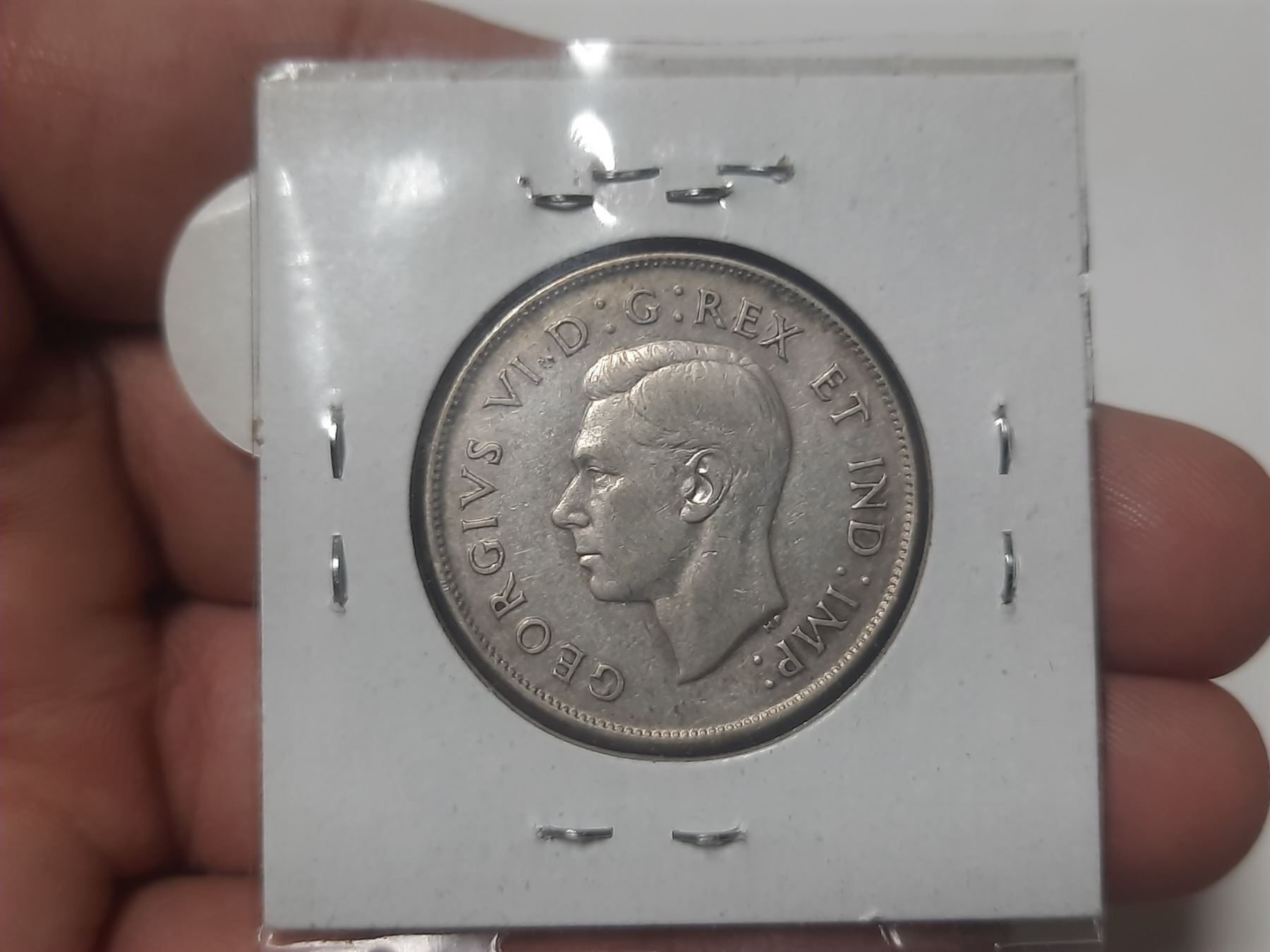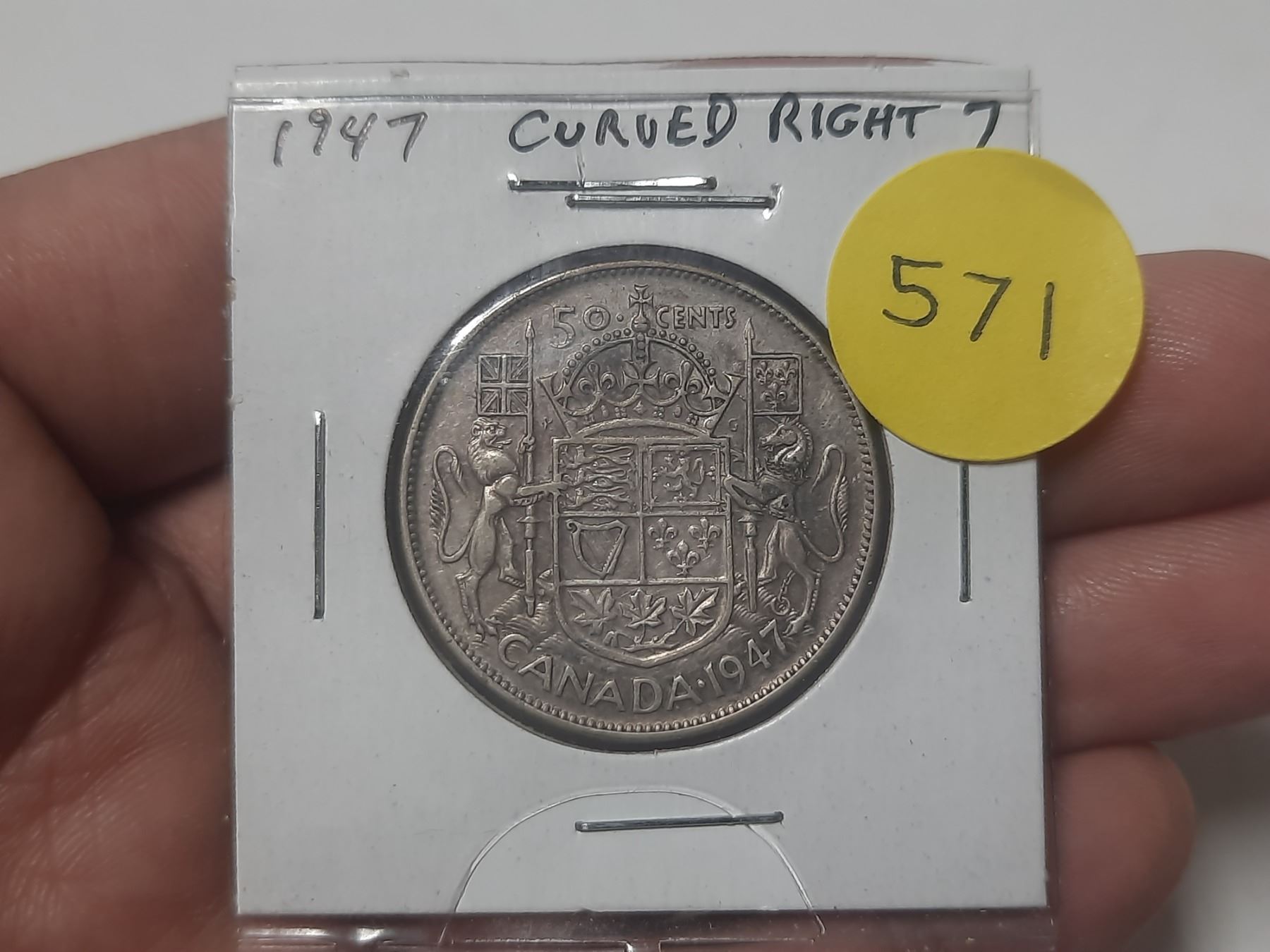 1947 Canadian Silver 50 Cents. Curved Right 7 variety. VF20.
