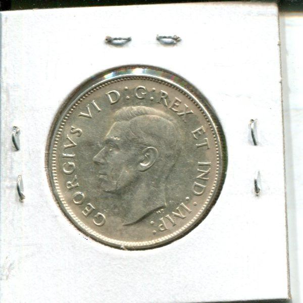 1947 Canadian Straight 7 Left Silver 50 Cents. VF-30. Nice.