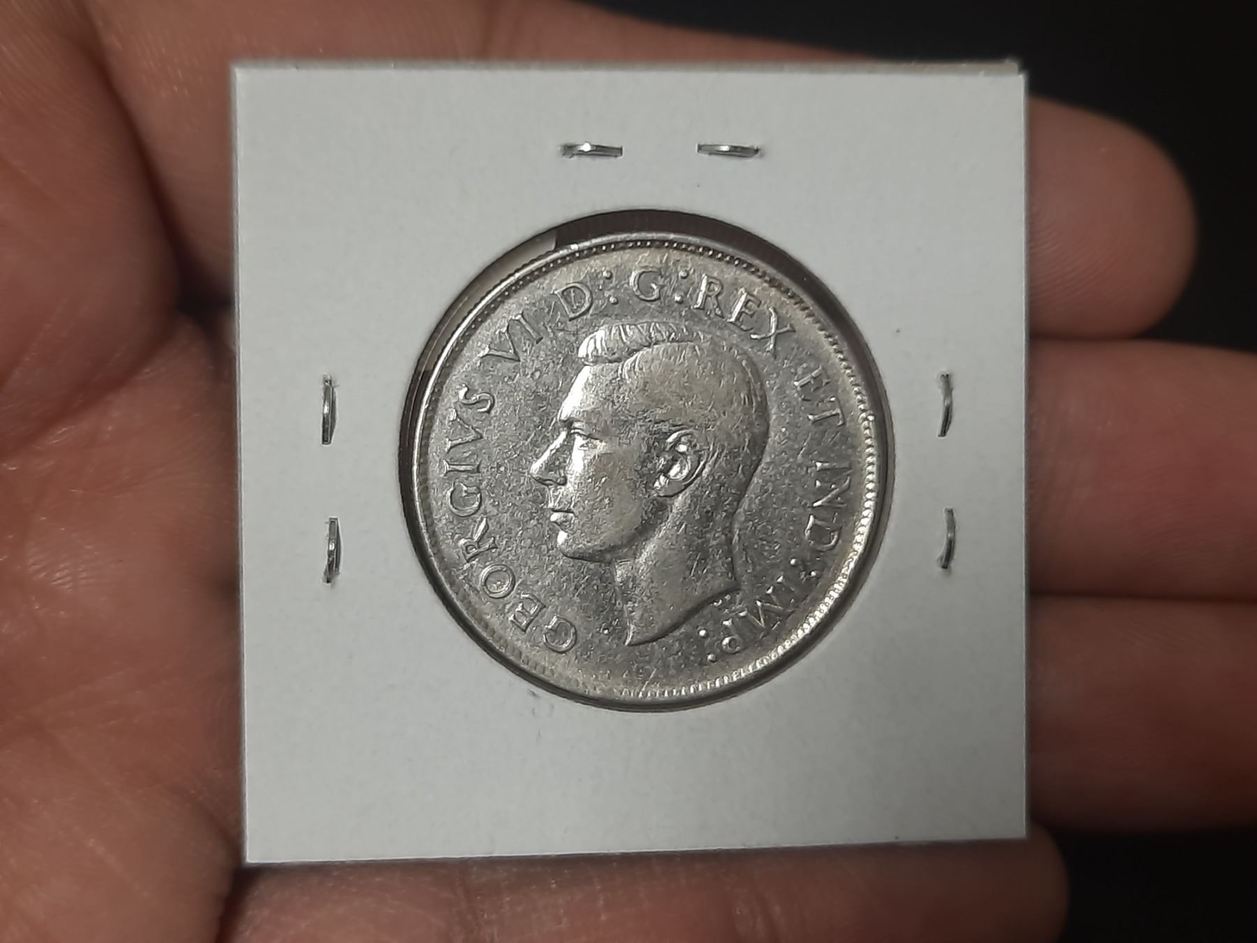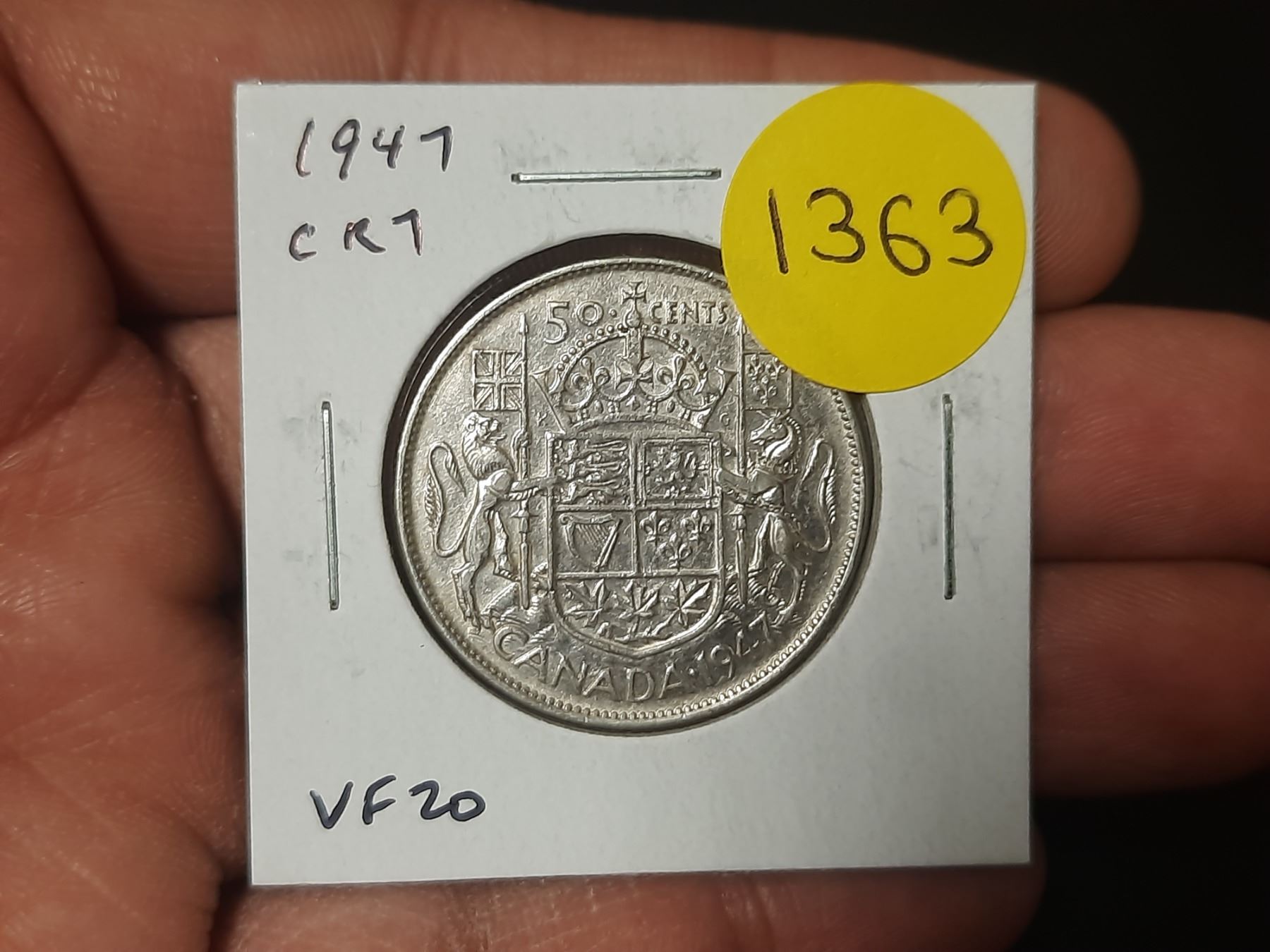 1947 Curved Right 7 Canadian Silver 50 Cents. VF20.