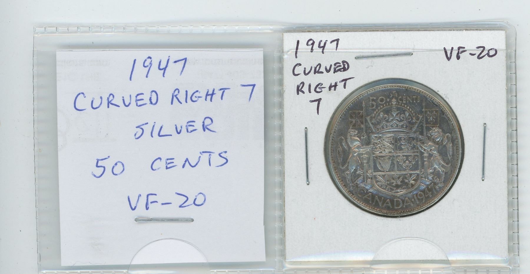 1947 Curved Right 7 silver 50 cents. VF-20.