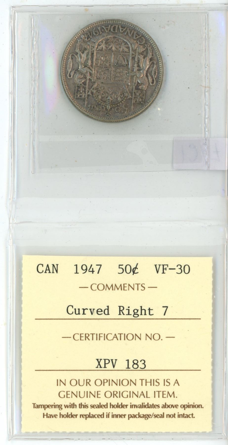 1947 ICCS graded, Canadian silver 50 cent coin - VF30