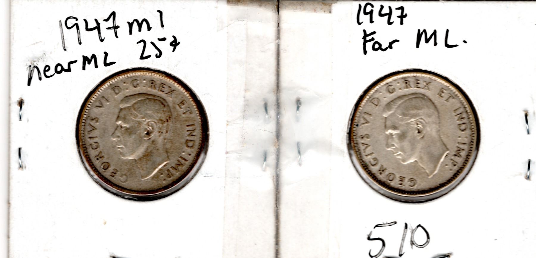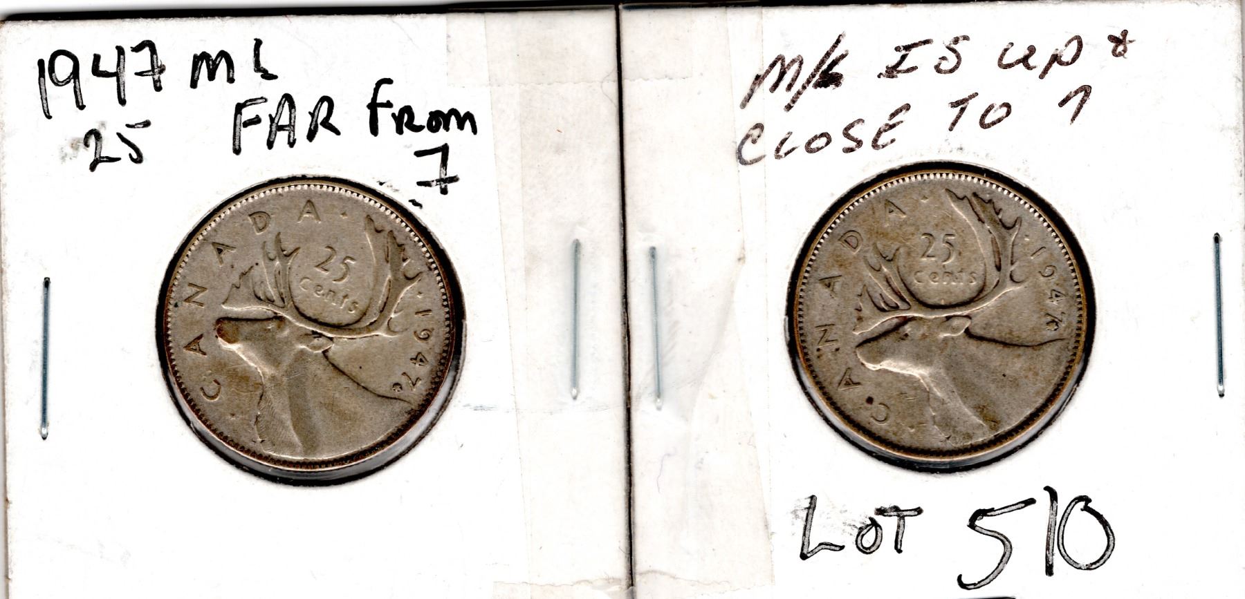 1947 ML TWENTY-FIVE CENT FAR FROM 7 AND CLOSE TO 7 VARIETIES