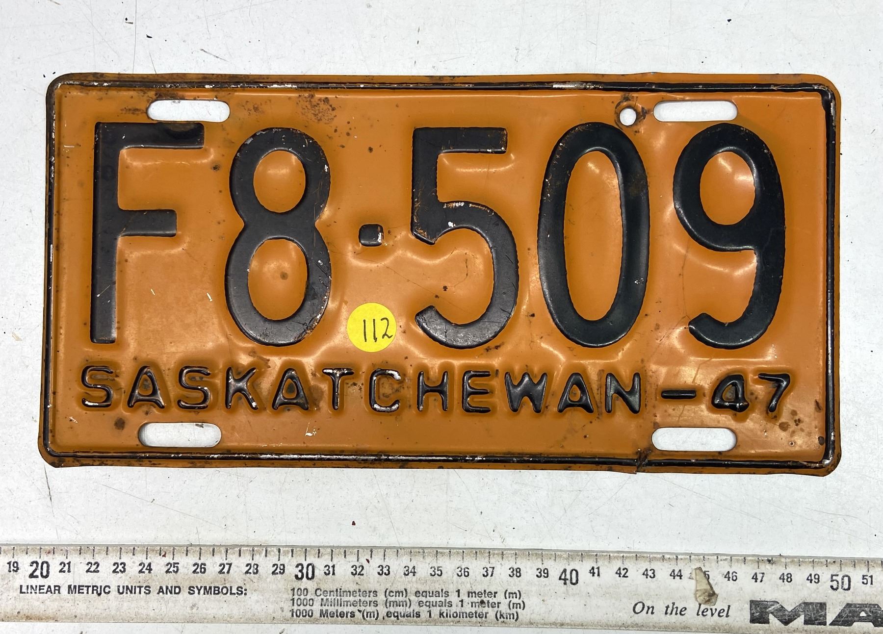 1947 Saskatchewan Canada Vintage License Plate F 8-509