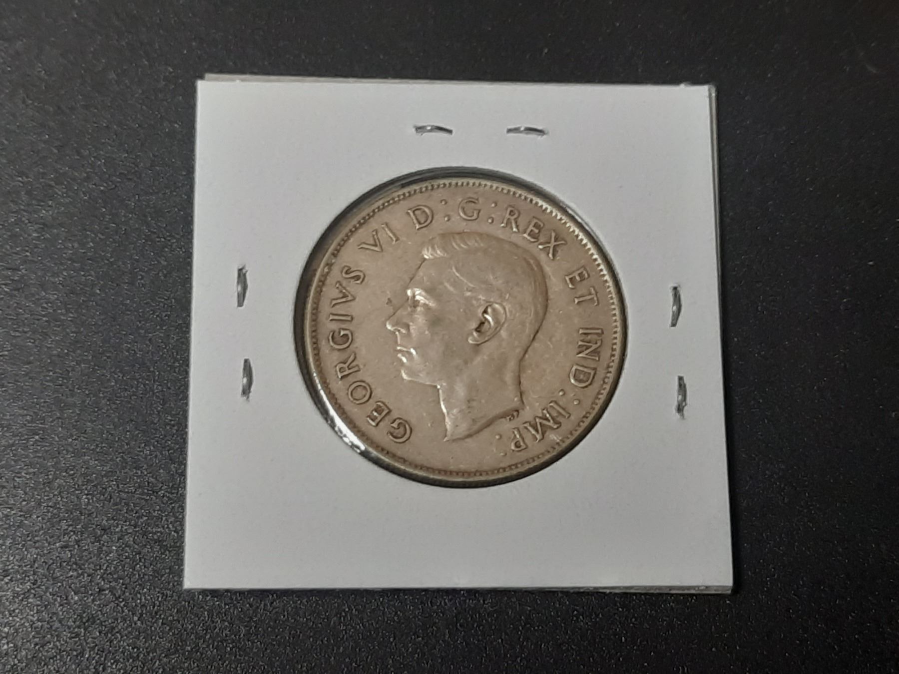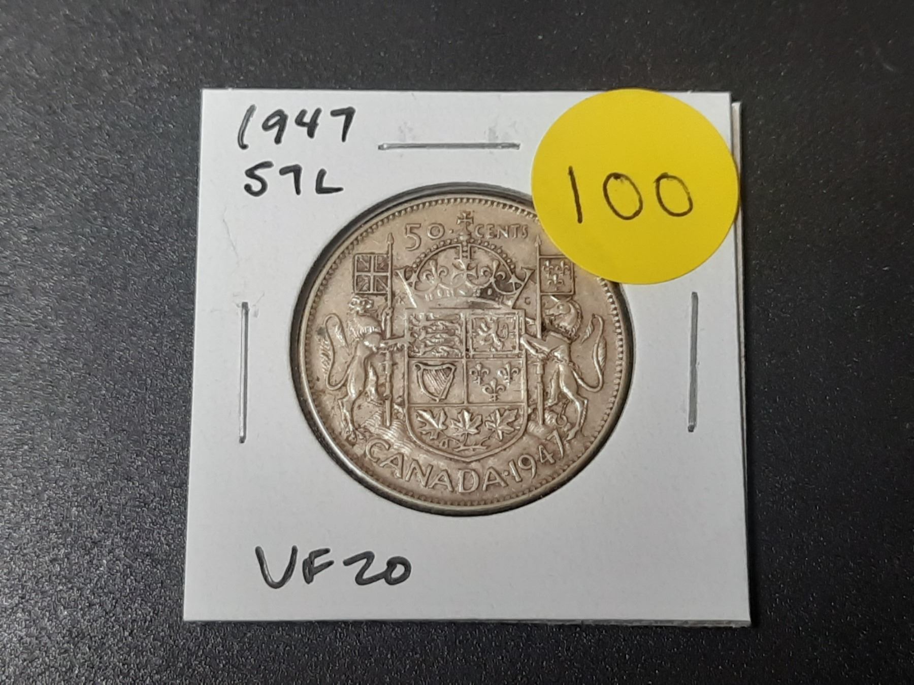 1947 Straight 7 Left Canadian Silver 50 Cents. VF20.