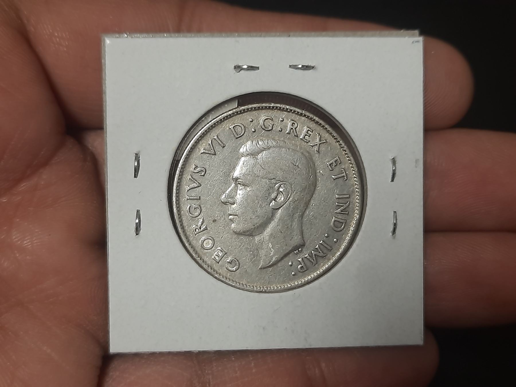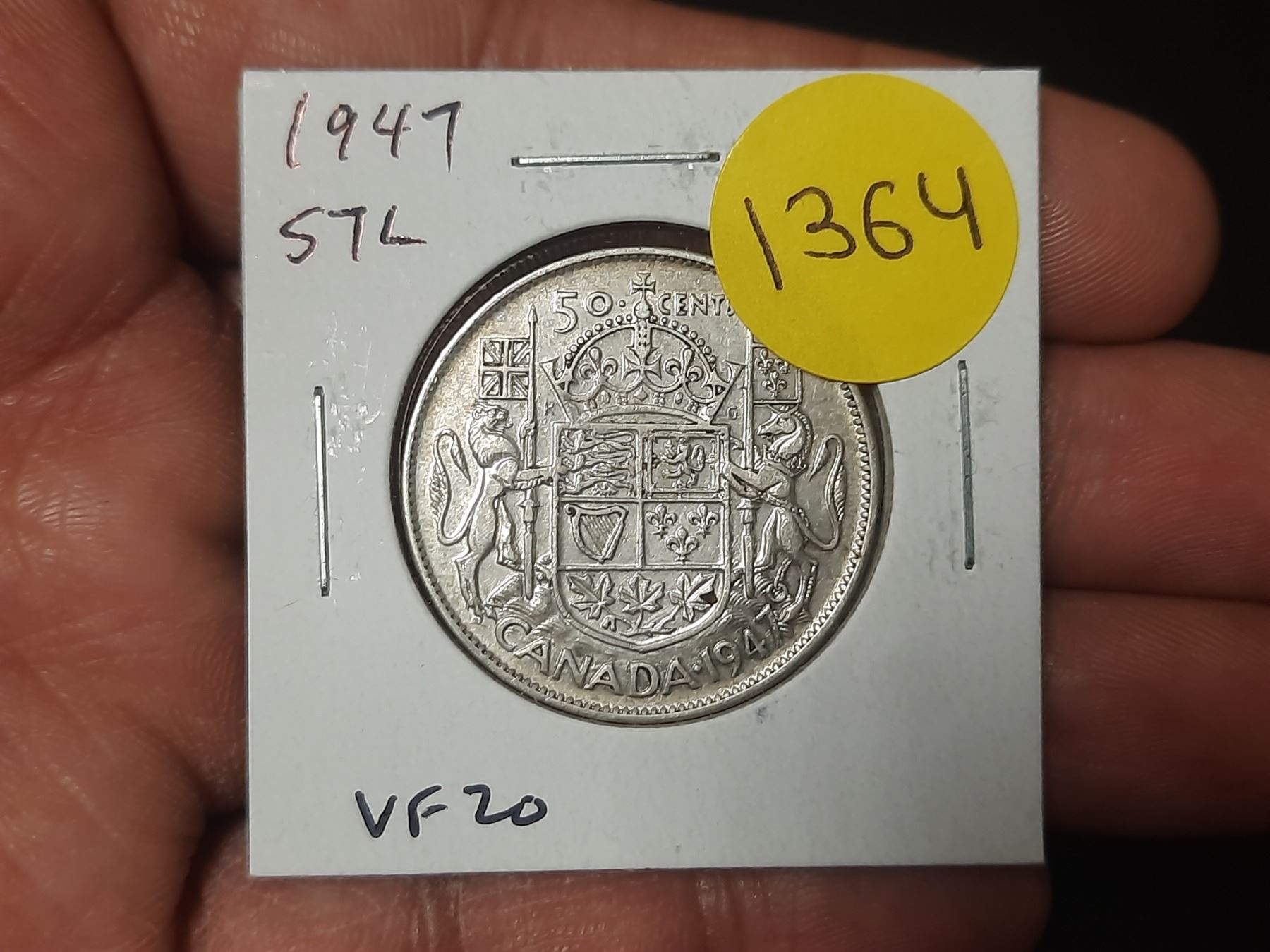 1947 Straight 7 Left Canadian Silver 50 cents. VF20.