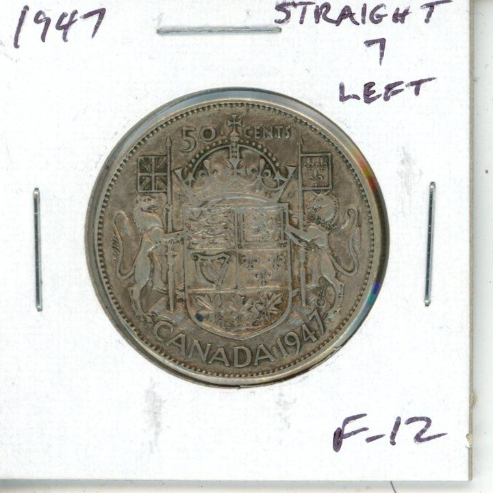 1947 Straight 7 Left Silver 50 Cents. F-12.
