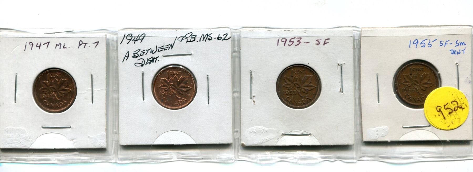 1947ML Pt 7, 1949 "A" Between Dents, 1953 SF, 1955 SF-Sm De Small Cents