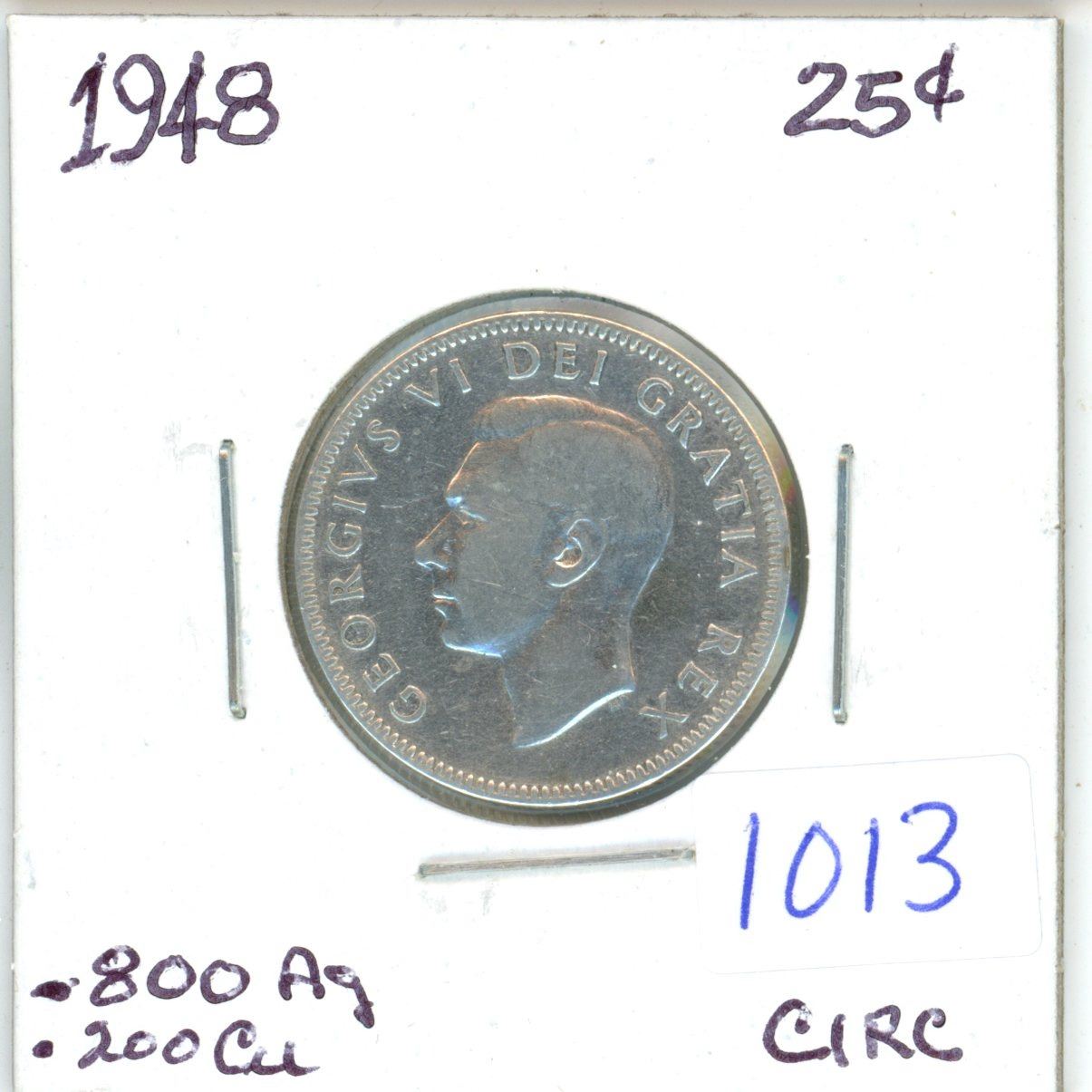 1948 Canadian 25 cent silver coin