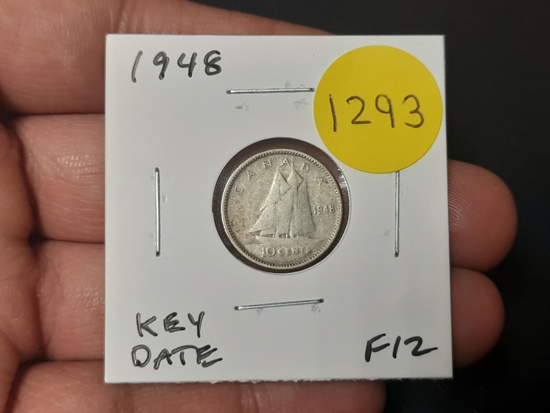 1948 Canadian Silver 10 Cents. Key Date. F12.
