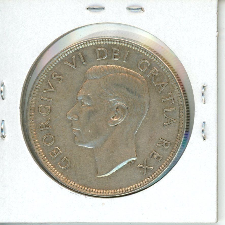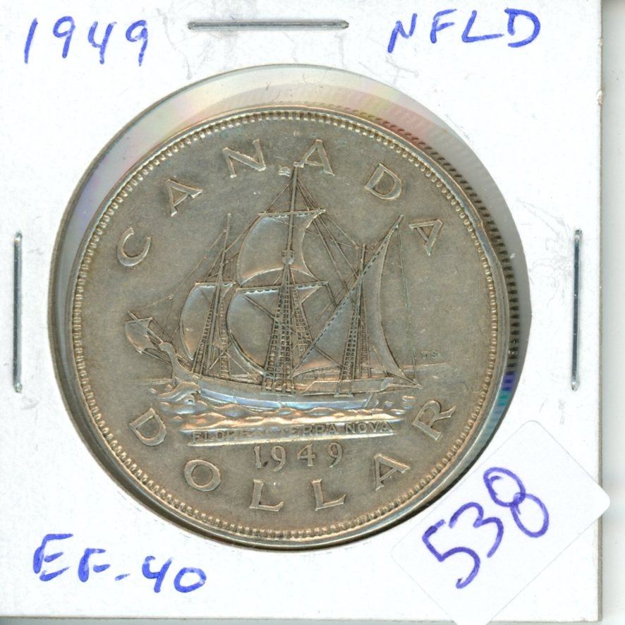 1949 Canadian Silver Dollar. Depicts John Cabot’s ship Matthew to celebrate Newfoundland joining Canada. EF-40.