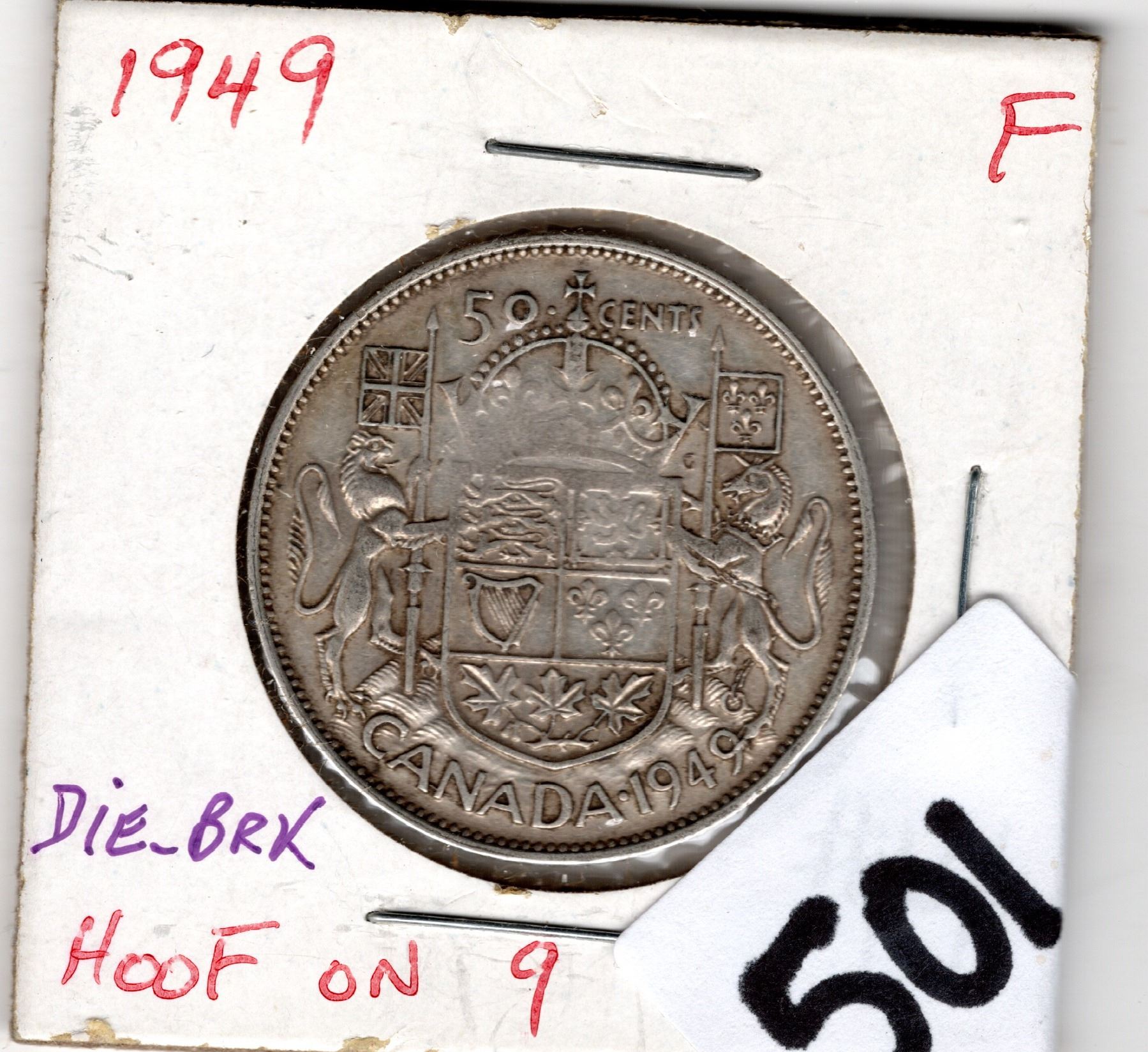 1949 FITY CENT SCARCE HOOF ON 9 VARIETY