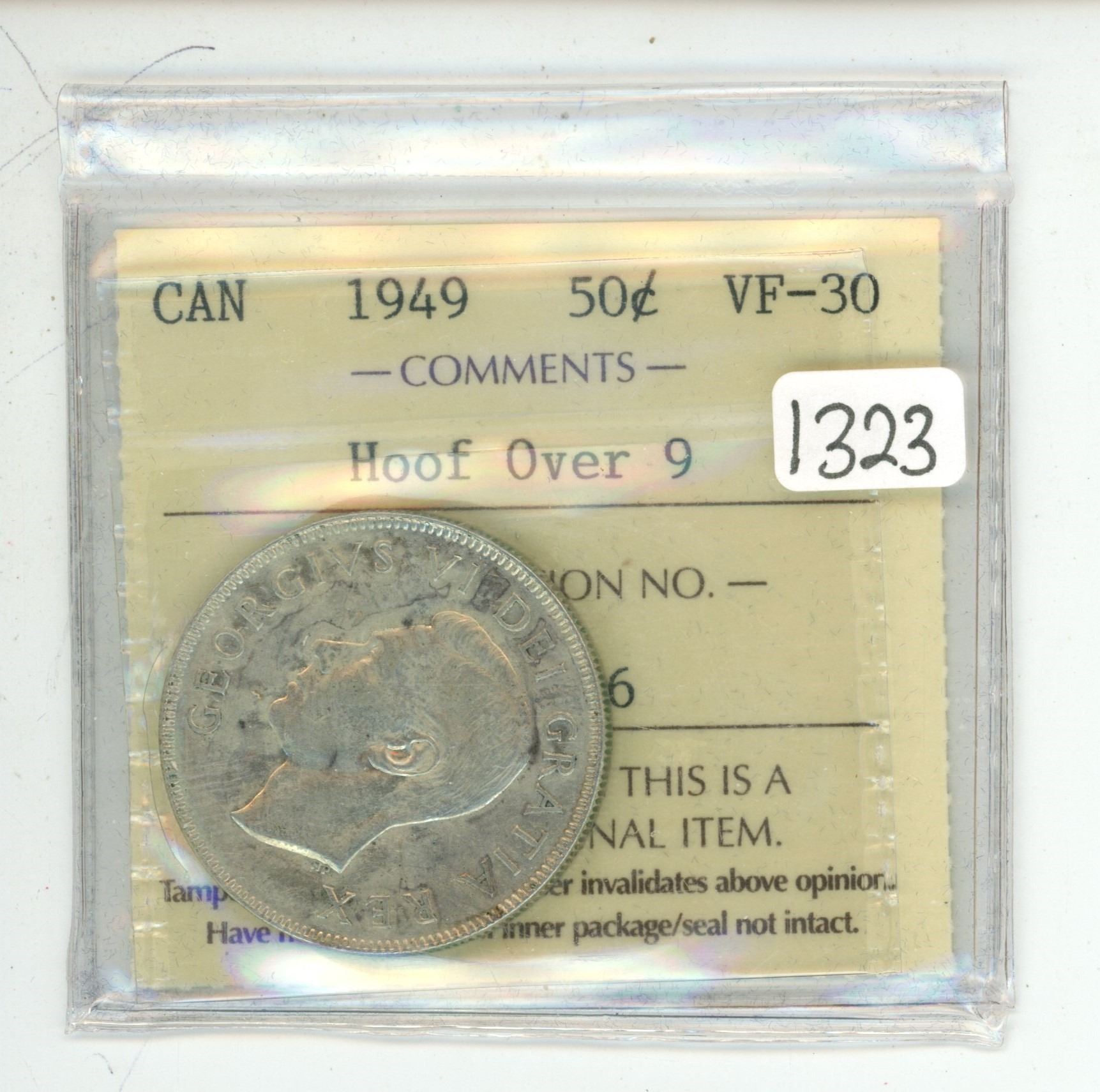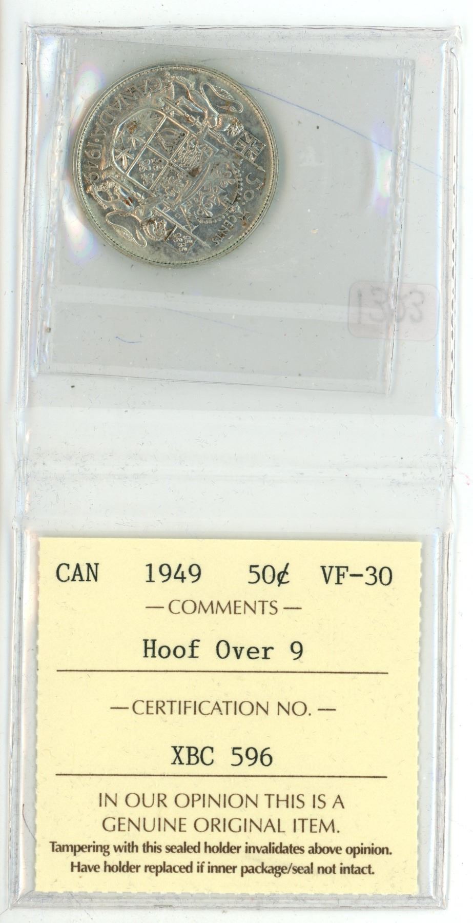 1949 ICCS graded, Canadian silver 50 cent coin - VF30