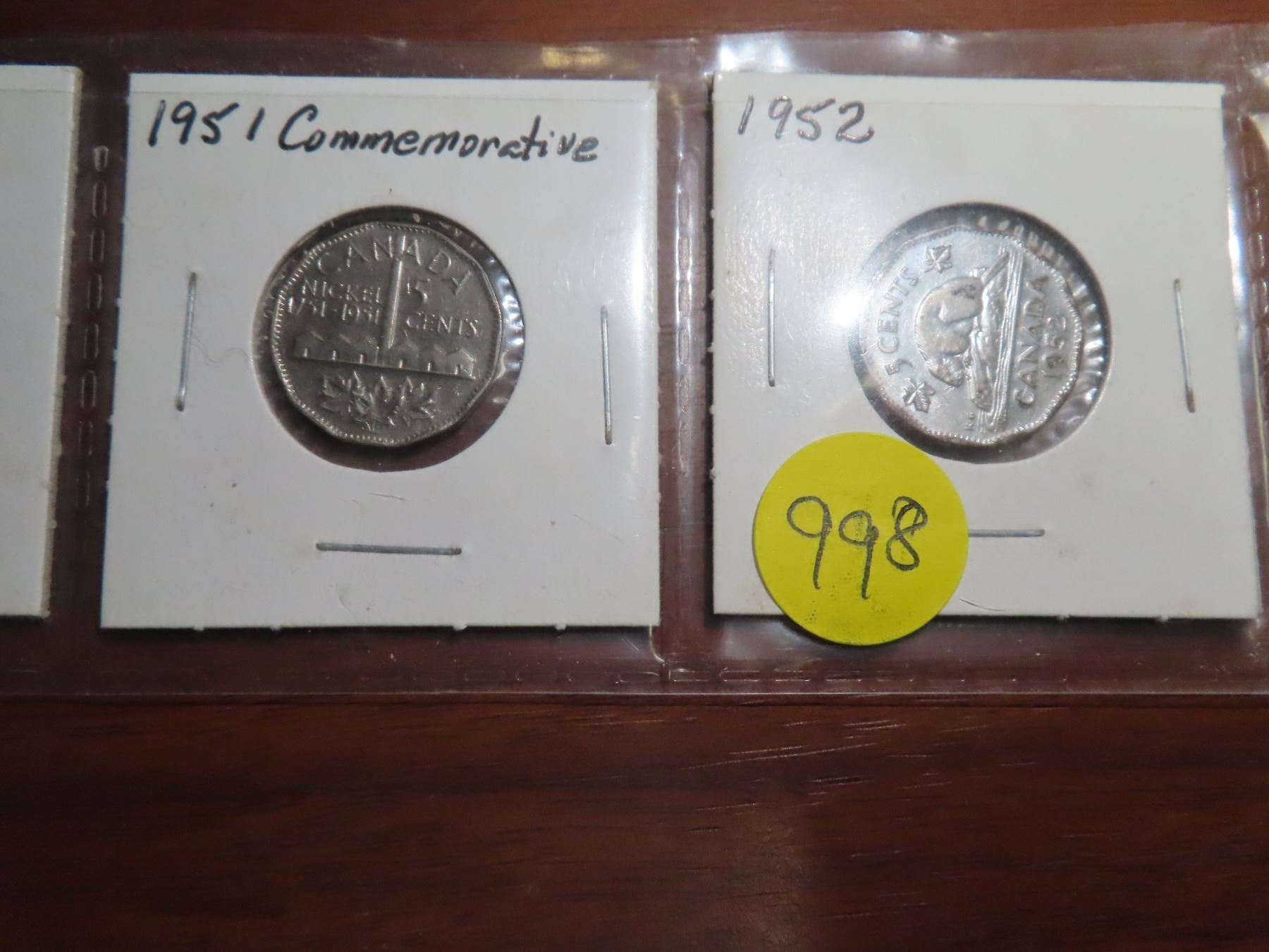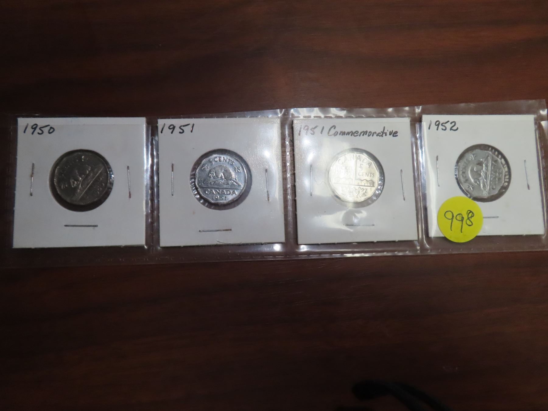 1950,1951,1951 commemorative ,1952 5 cents canadian coins