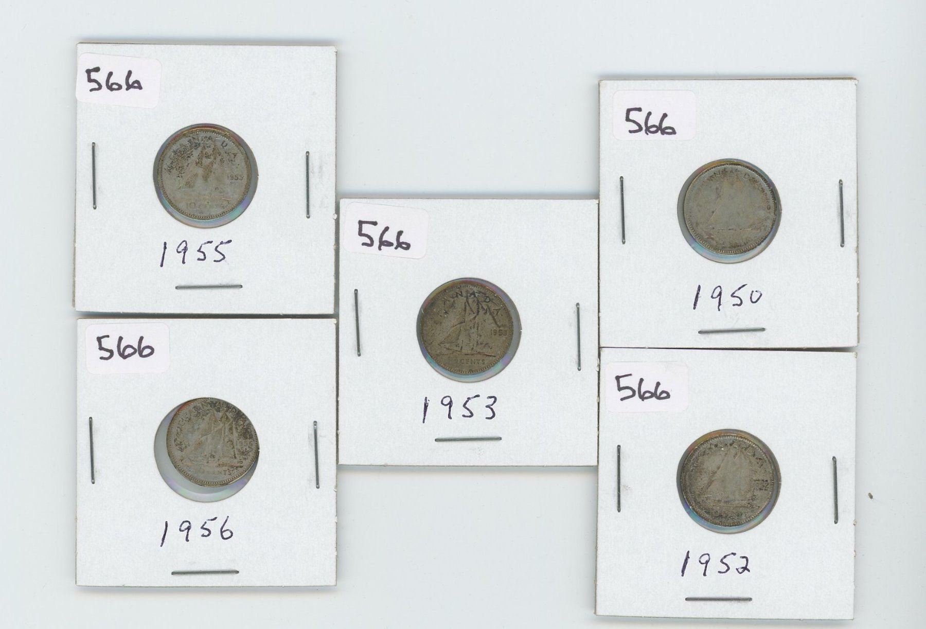 1950,1952,1953,1955,1956- CANADIAN SILVER 10 CENT