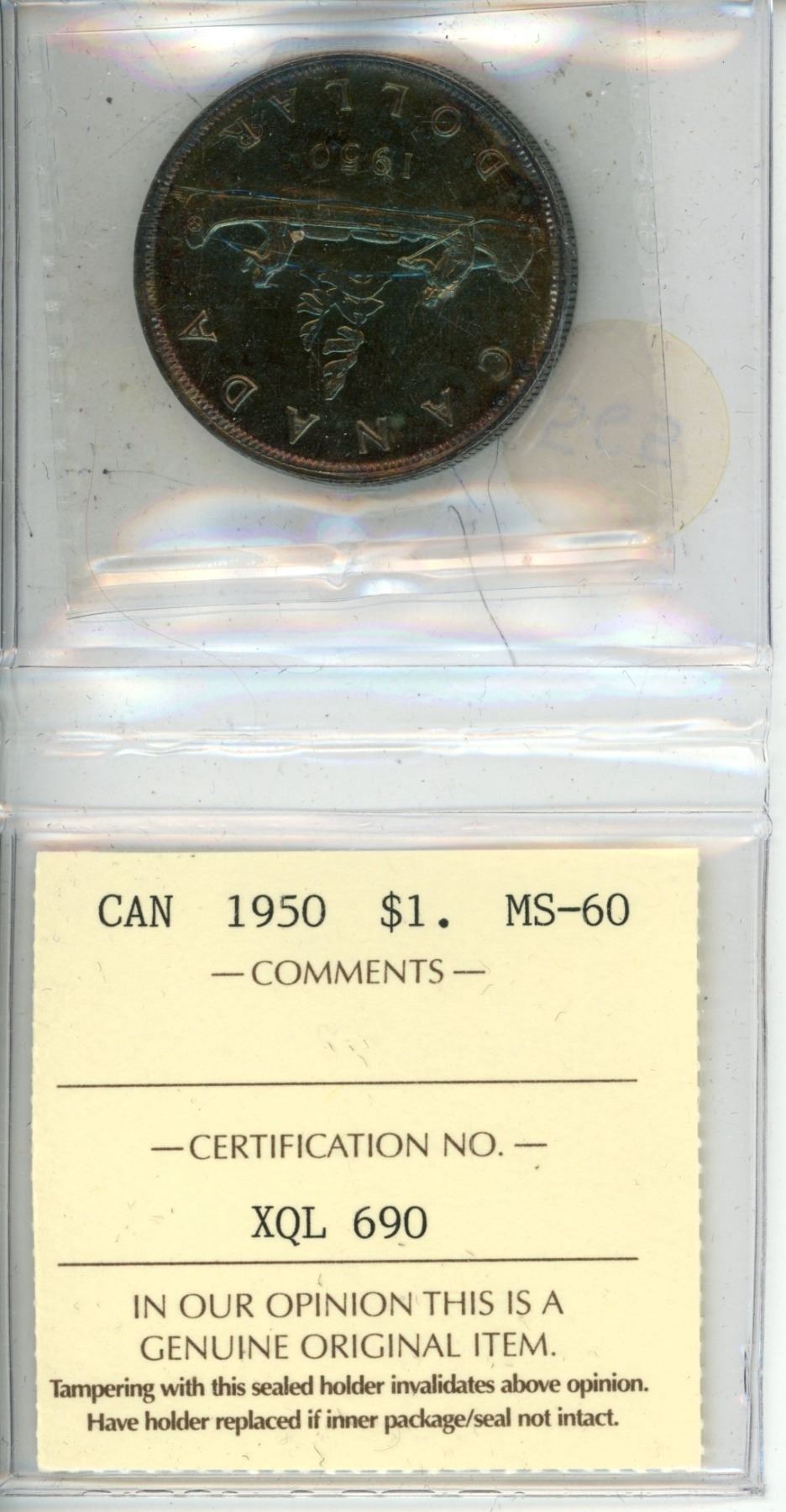 1950 Canada One Dollar - MS-60 - Silver - XQL 690 - ICCS.
