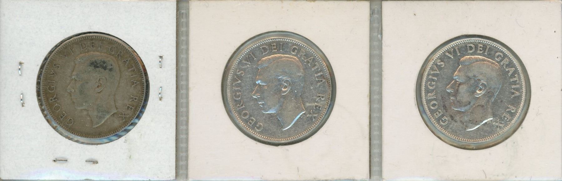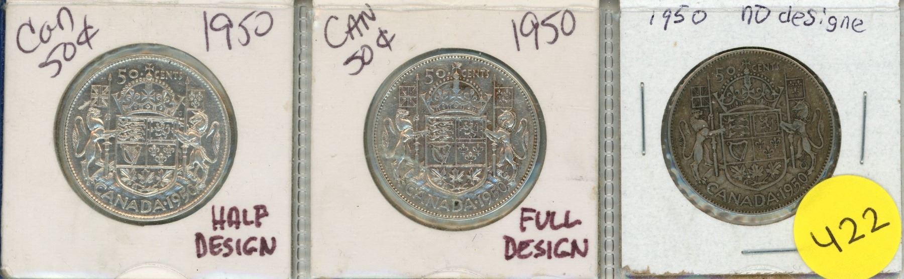 1950 Canada Silver 50 Cents - Half Design , Full Design and No Design.