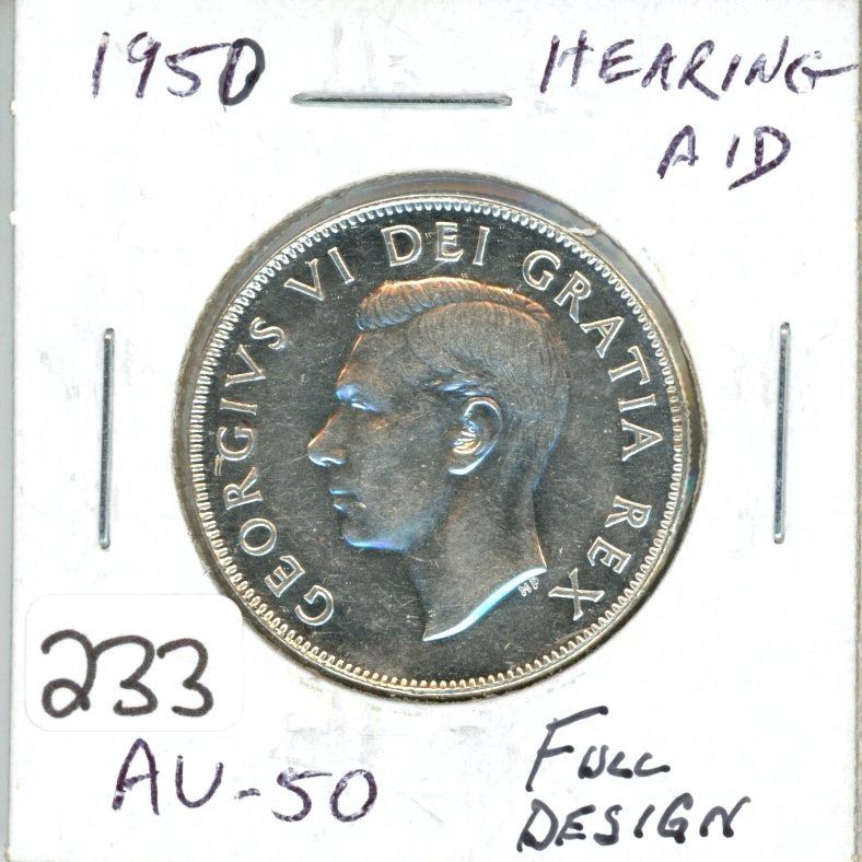 1950 Canadian 50¢ full design hearing aid