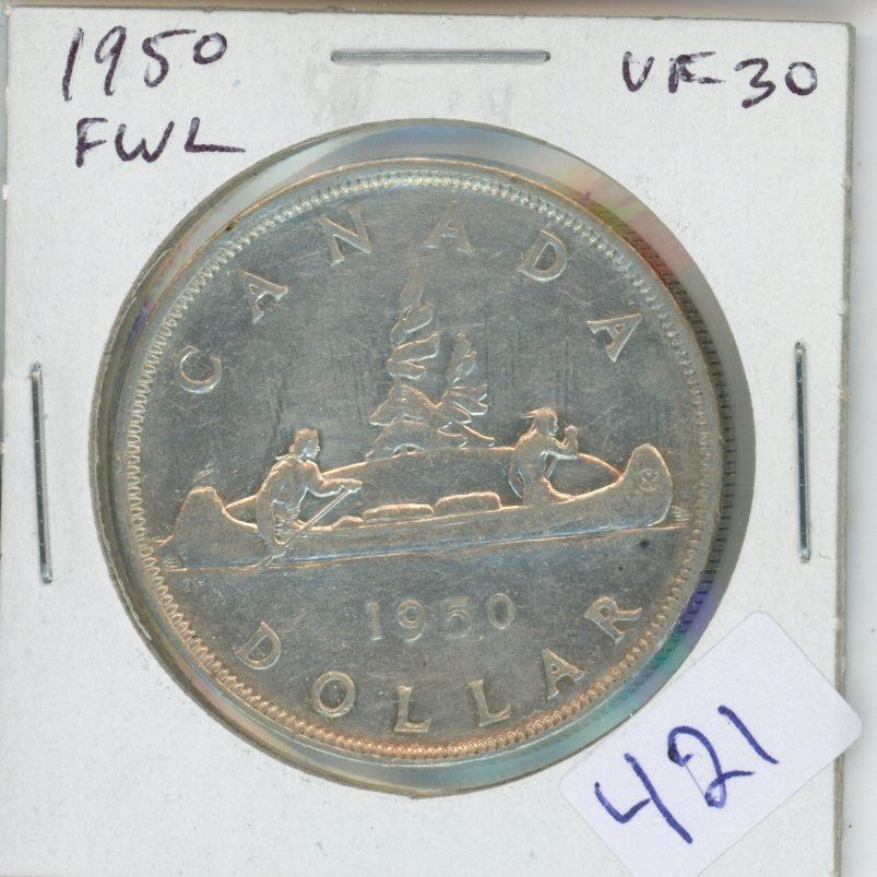 1950 Full Water Lines Canadian Silver Dollar. VF-30.