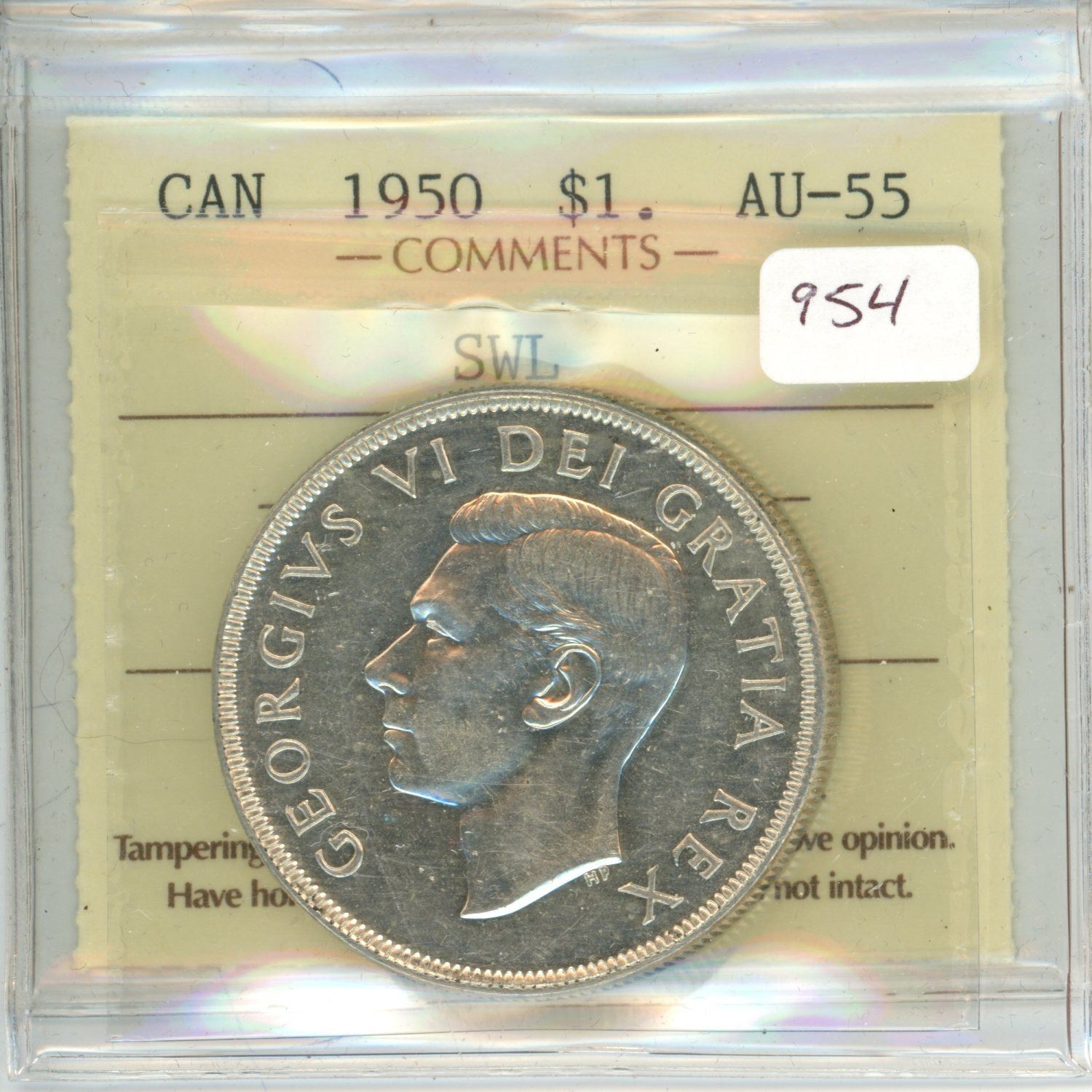 1950 Graded Canadian Silver Dollar - AU-55: SWL