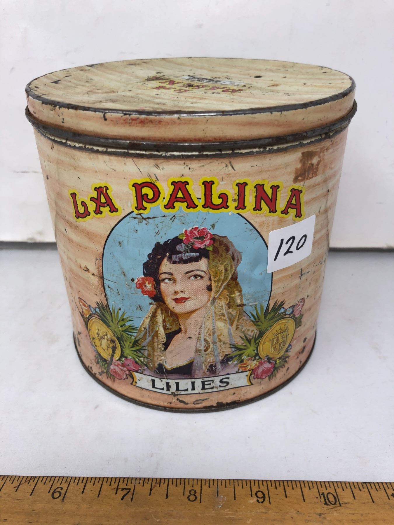 1950 La Paline lilies cigar tin. 5 ½” x 5 ½”