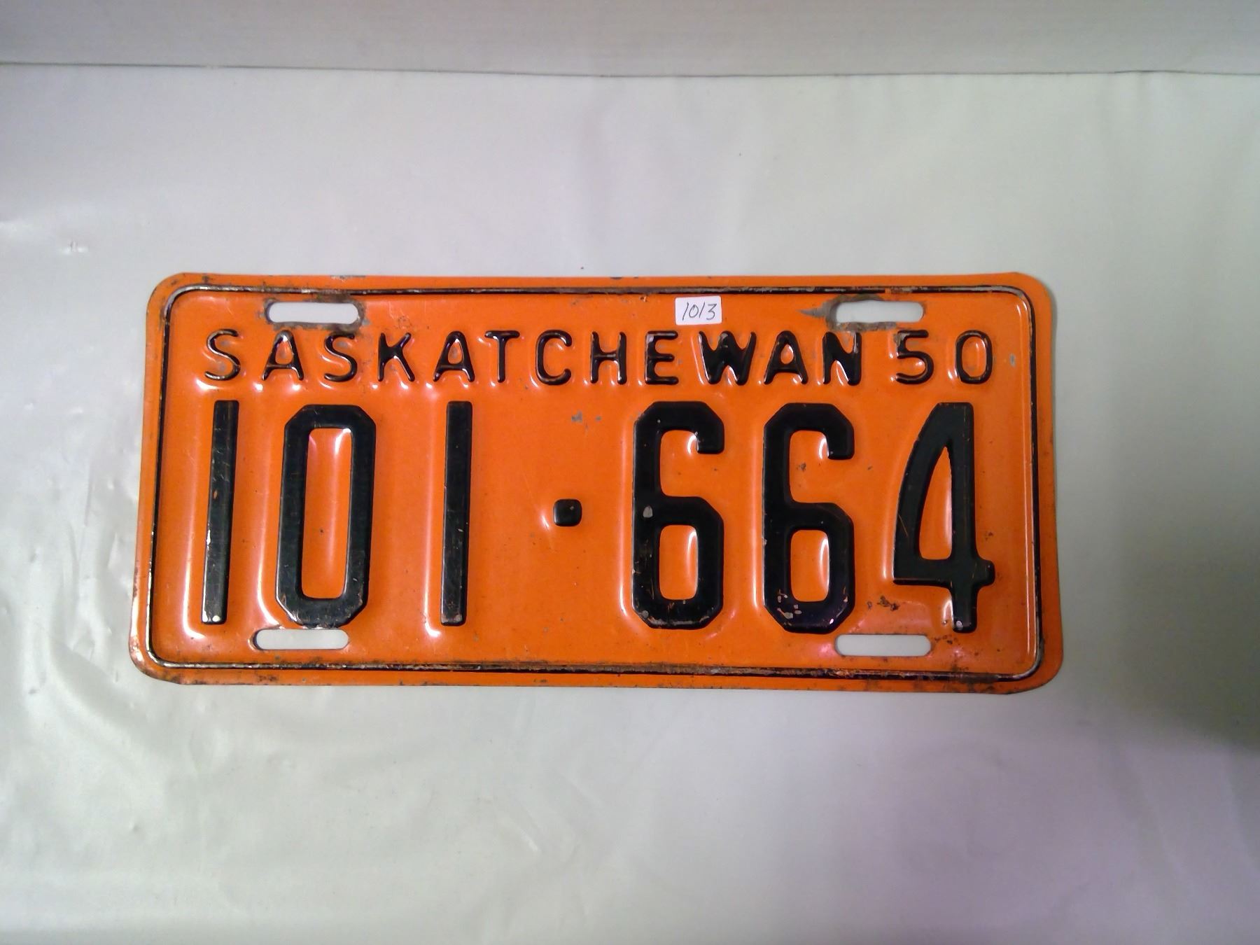 1950 Sask Black/Orange License Plate