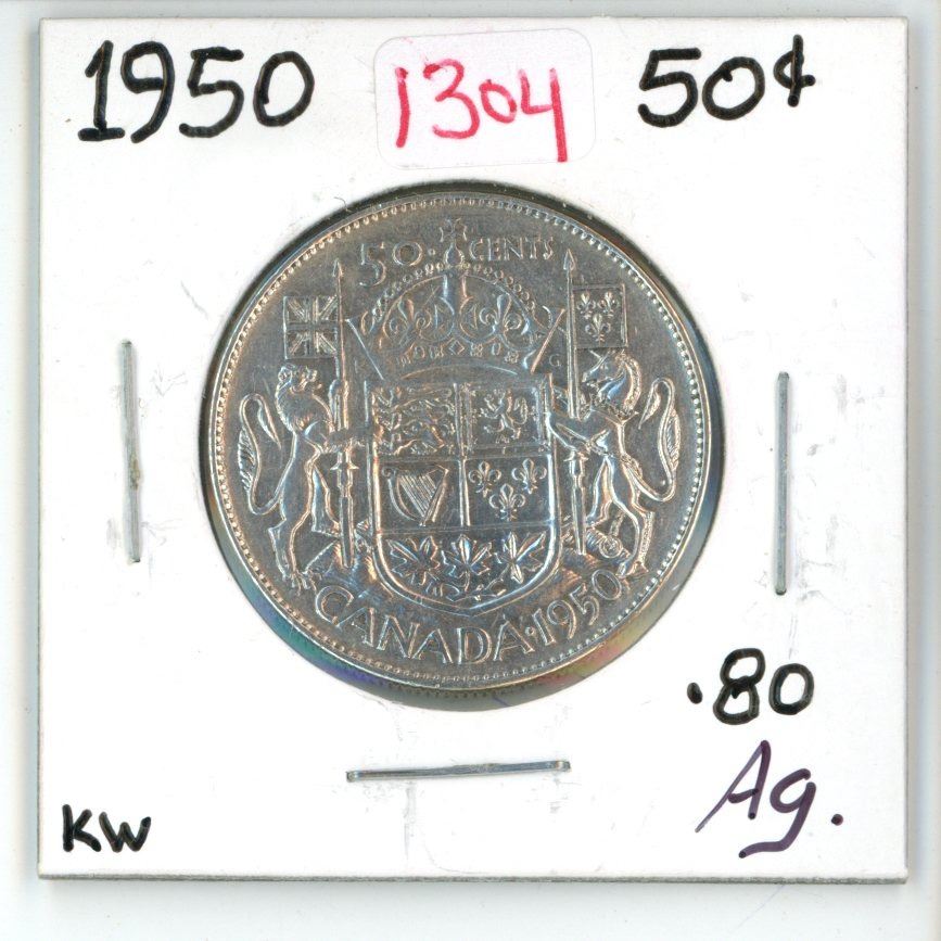 1950 canadian silver half-dollar (KW-.80AG)