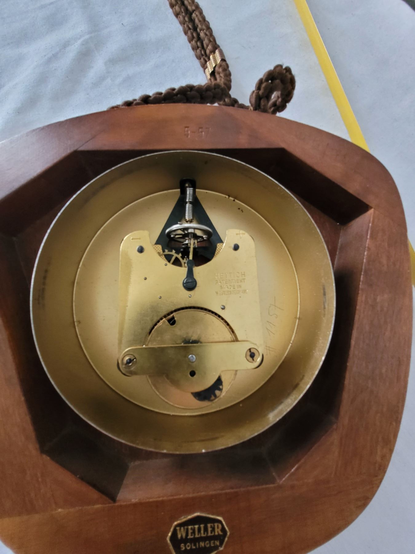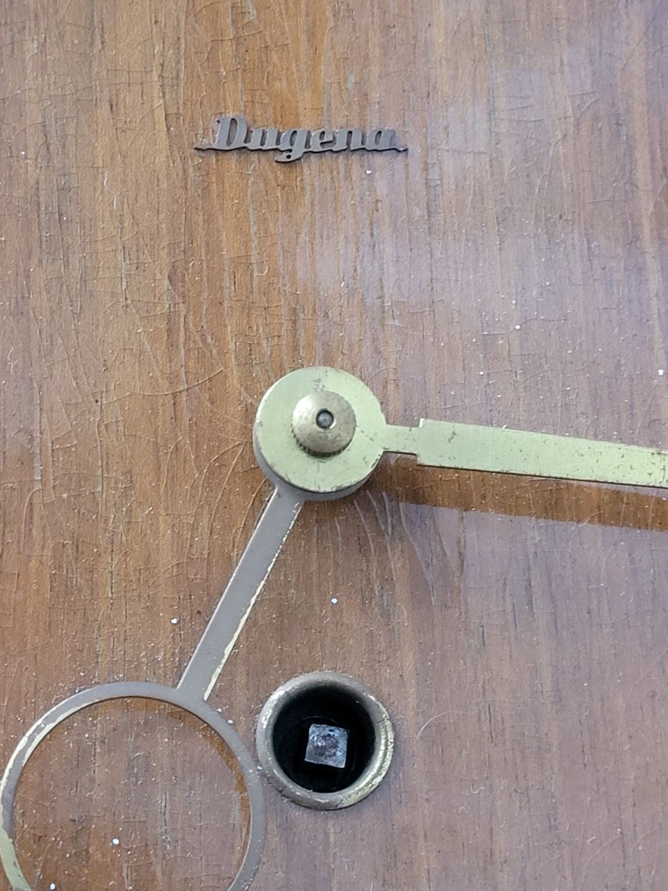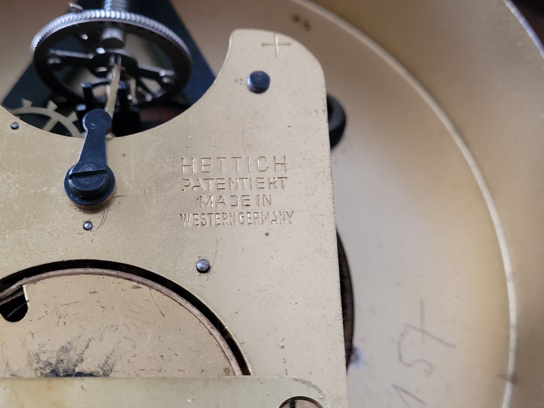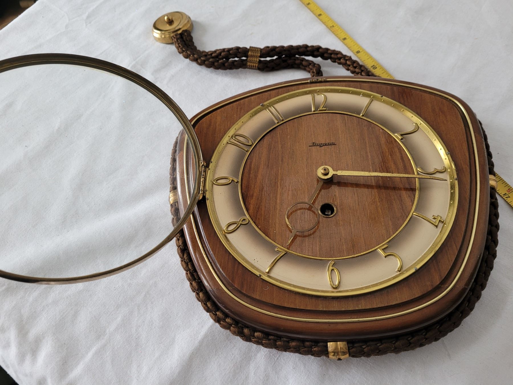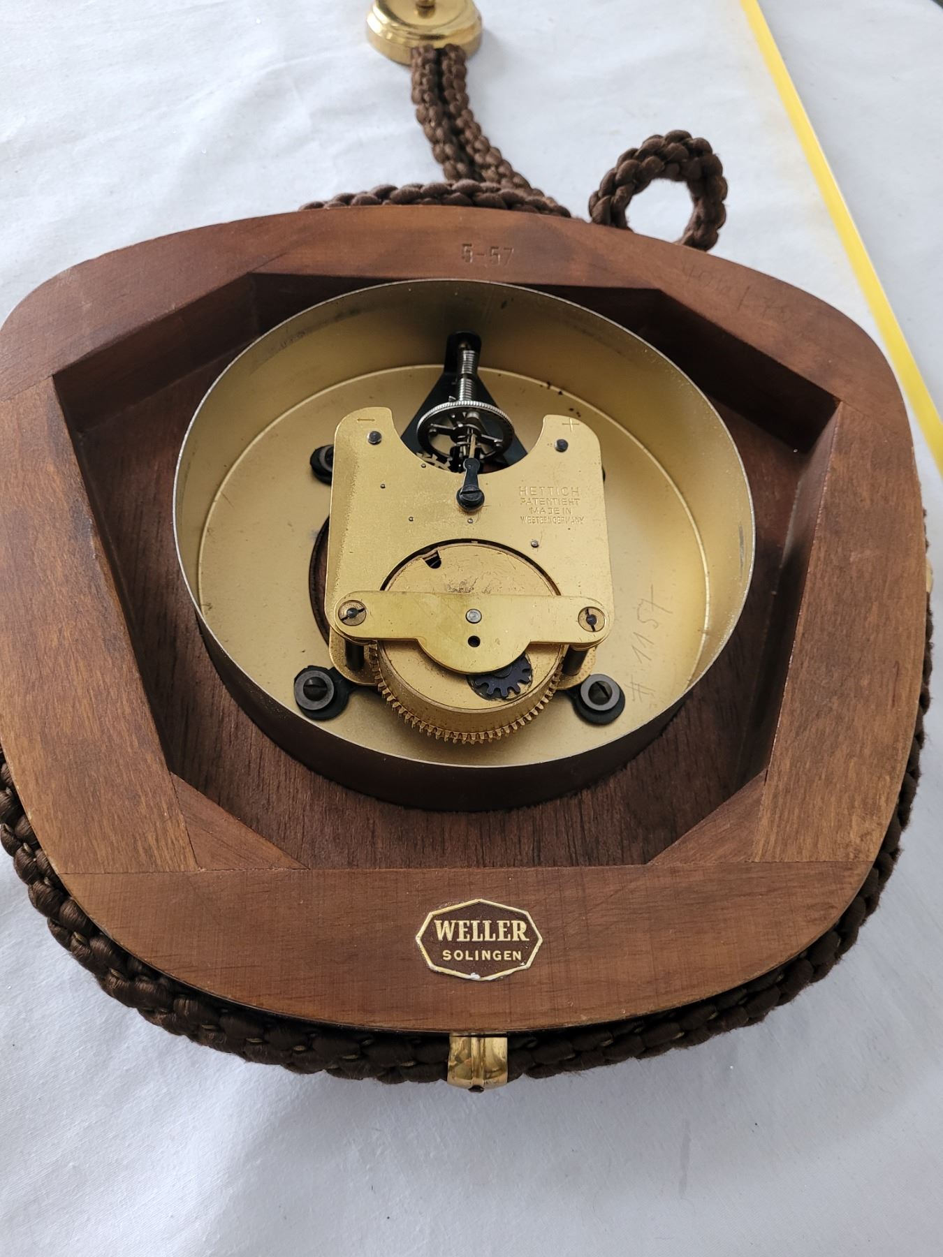 1950's-'60's Weller Solingen Dugena manual wind wall clock. West germany, Hettich movement, dome glass hinged front.not working