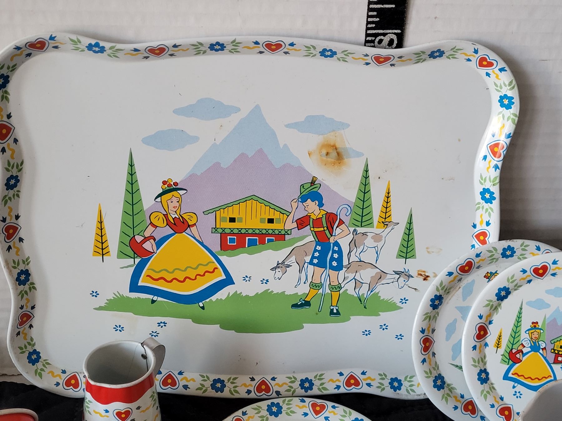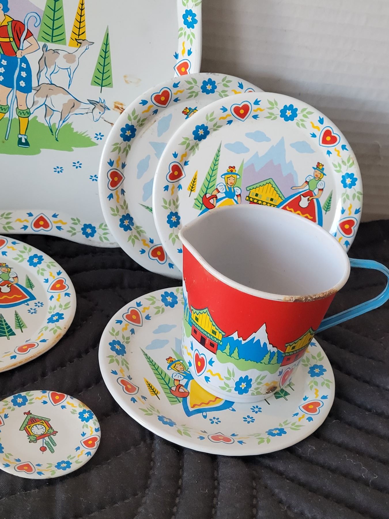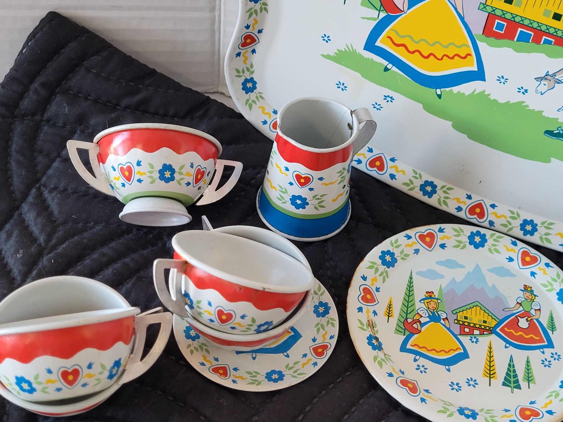 1950's Swiss Miss tin litho toy tea set. Ohio Art Co.