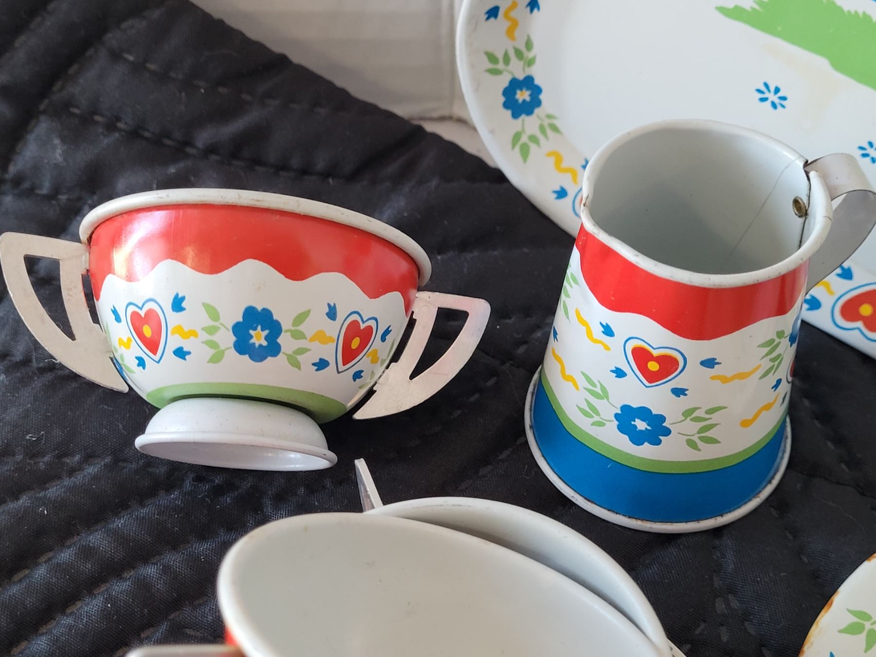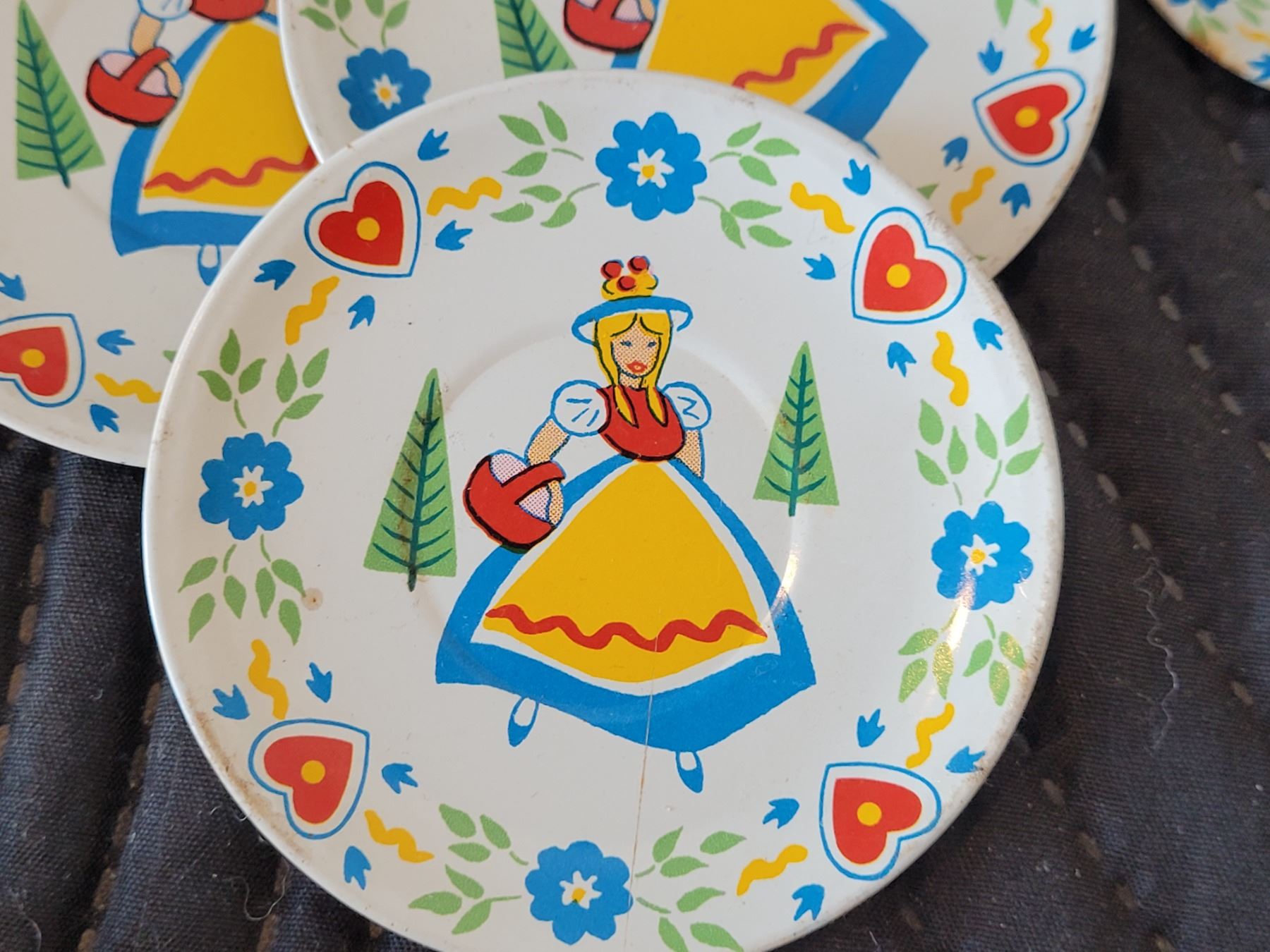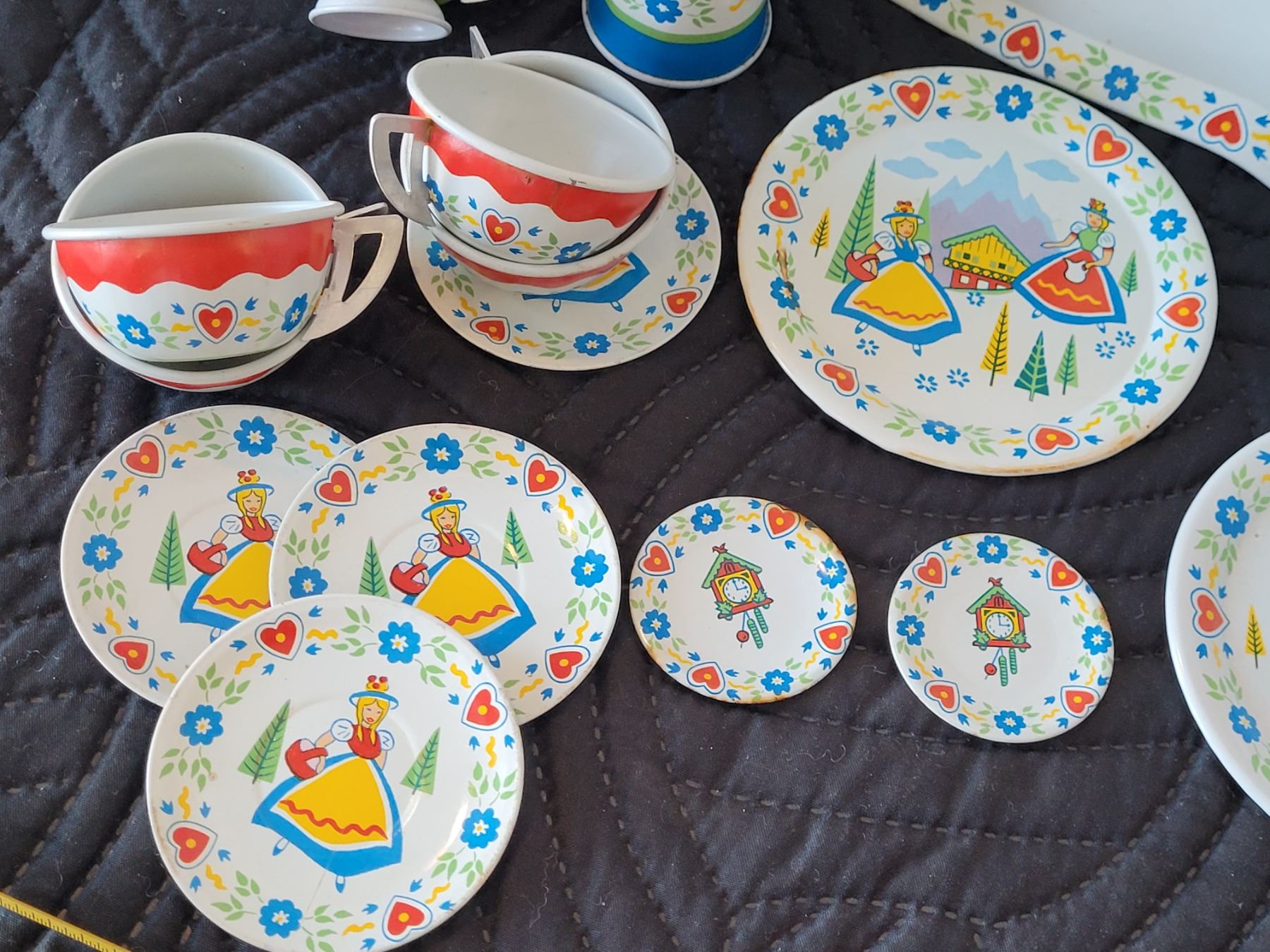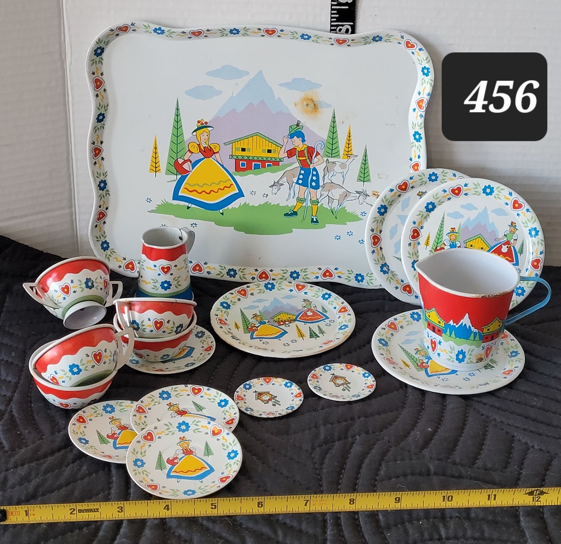 1950's Swiss Miss tin litho toy tea set. Ohio Art Co.